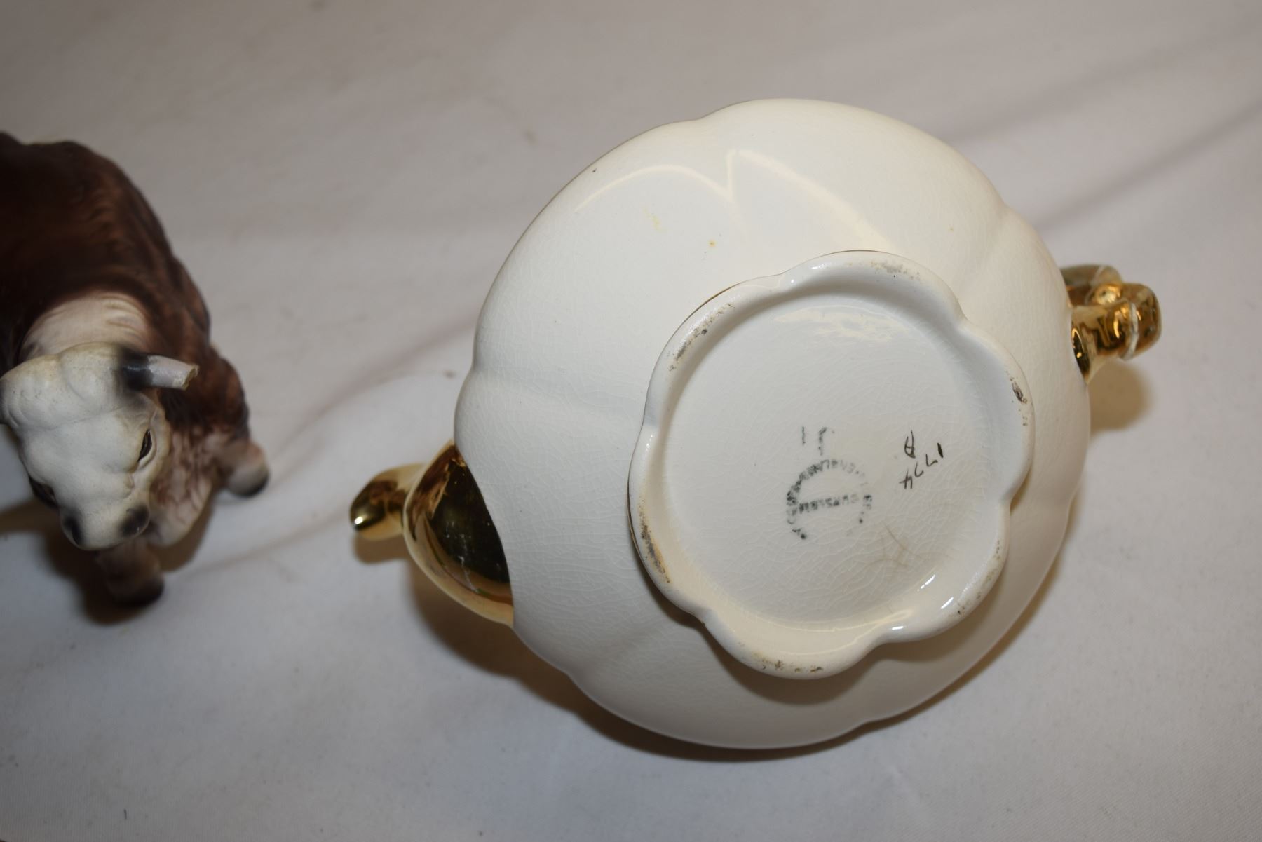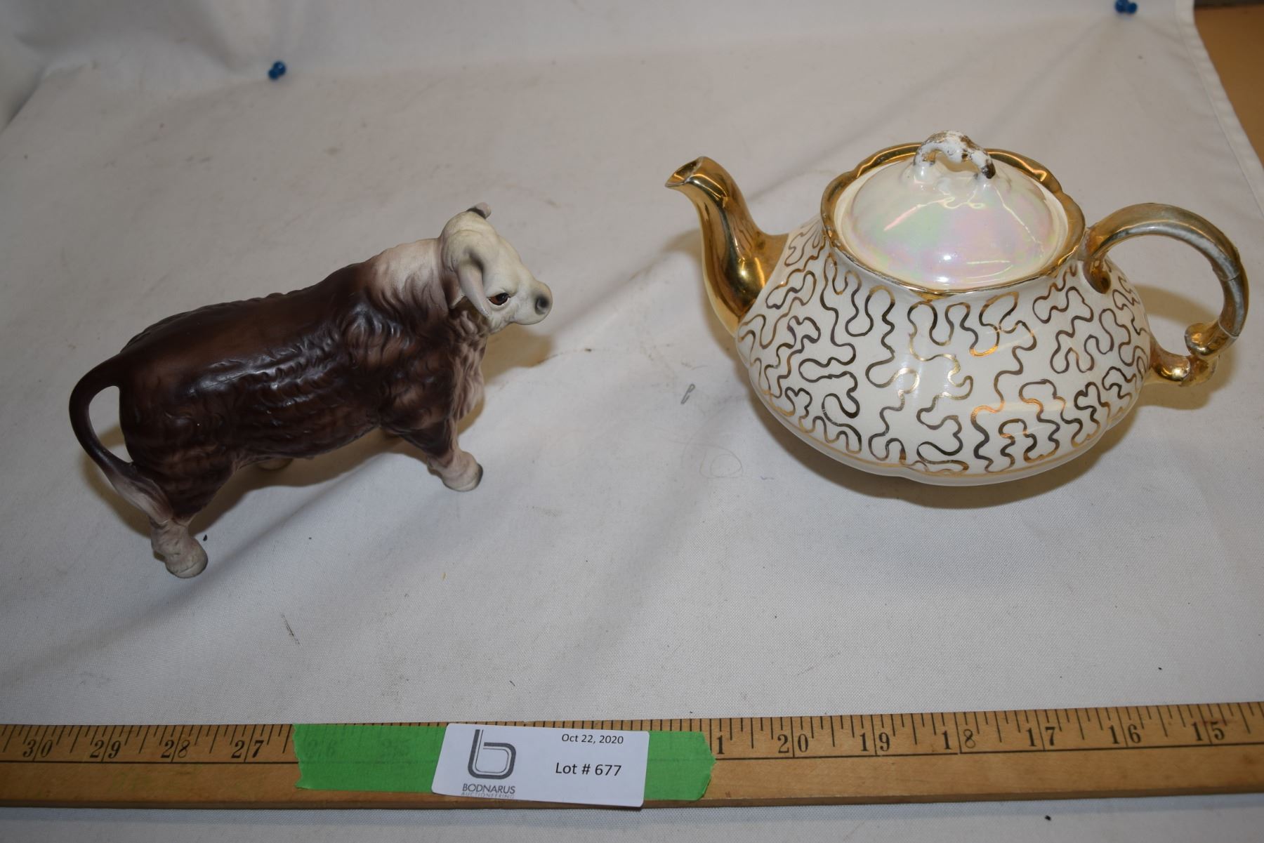 Porcelain Bull (Damaged) and Burslam Tea Pot