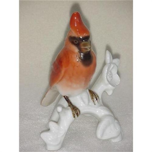 5 1/4" tall porcelain model of a cardinal perched on a branch. Handpainted. Signed "Gerold Porzellan Bavaria".