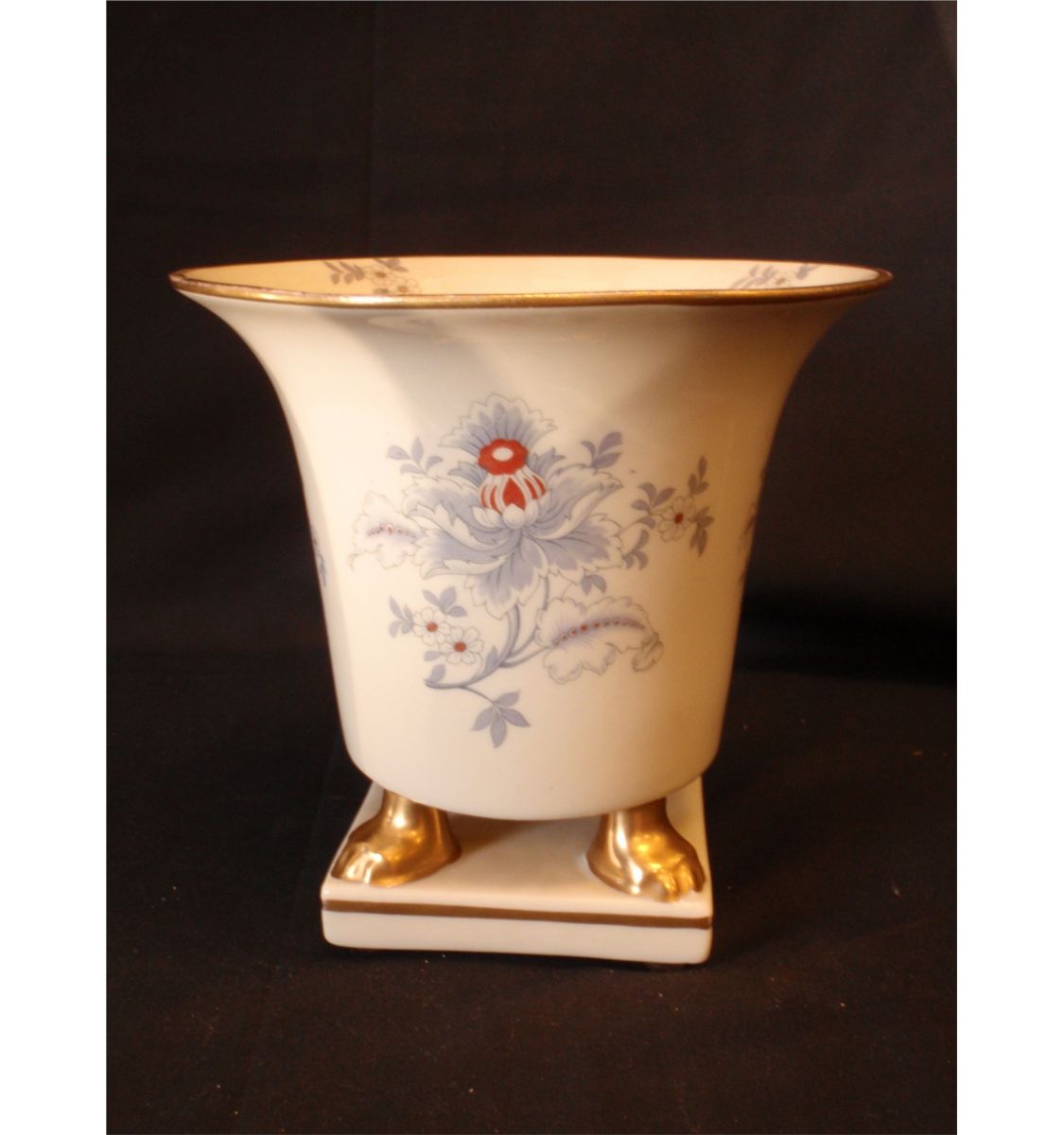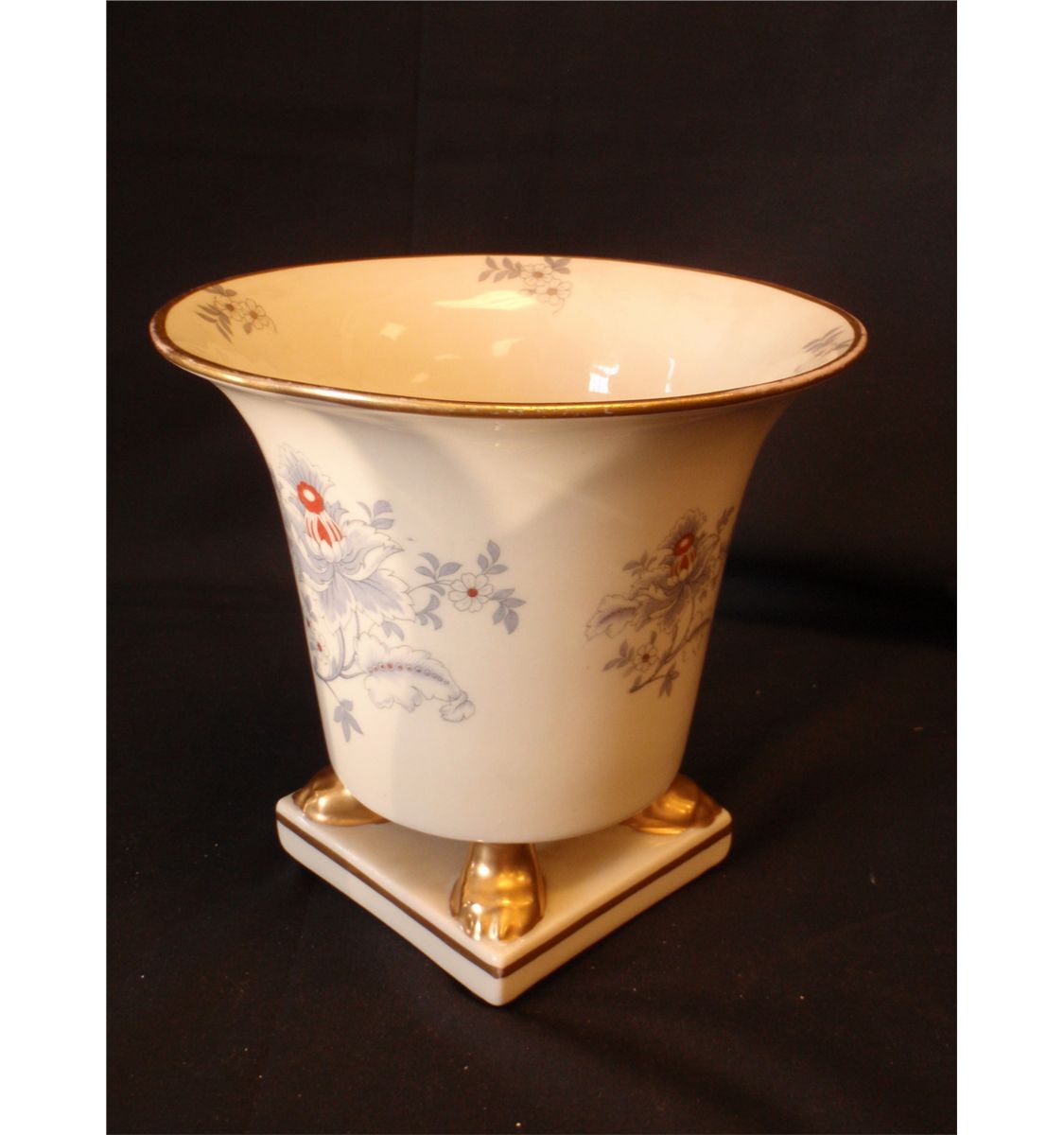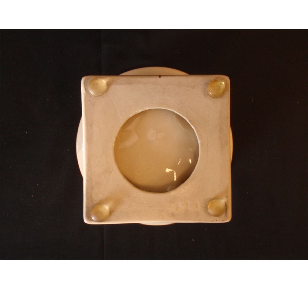 Porcelain cash pot adorned with gold accents and Floral designs. Ivory color field. Measures 6 1/4" Tall x 6 1/4" Diameter. Shipping on this lot: $10.00. Additional Shipping Charges for Lots sent outside of the U.S