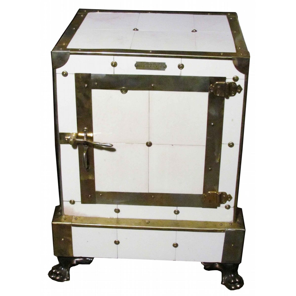 Porcelain Cigar Humidor. 1902 by the Wilke Mfg Co. All original. Porcelain tile with replacement puppy feet and brass trim. A couple of cracked tiles otherwise very good condition. 21 X 25 X 18 inches.