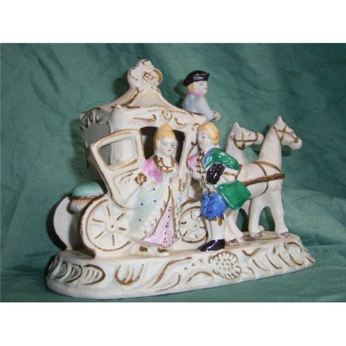 Vintage bisquit porcelain coach with probably Cinderella in it.