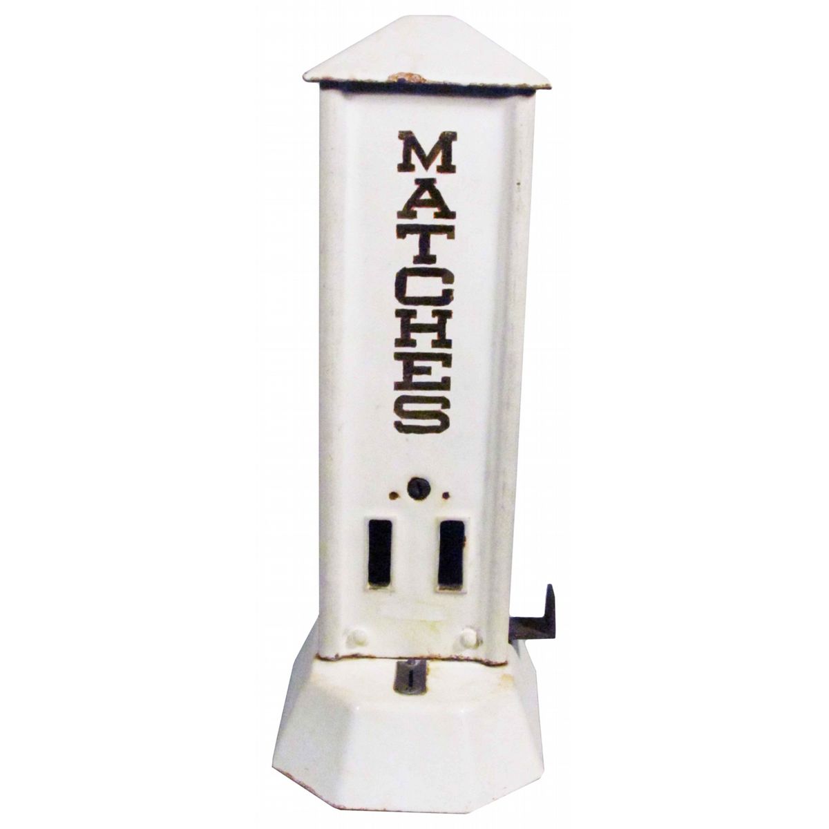 Northwestern Granite Porcelain Coin Operated Match Dispenser. Pat. 1923. Very good original condition, comes with key. 6 X 16 X 6 1/2 inches.