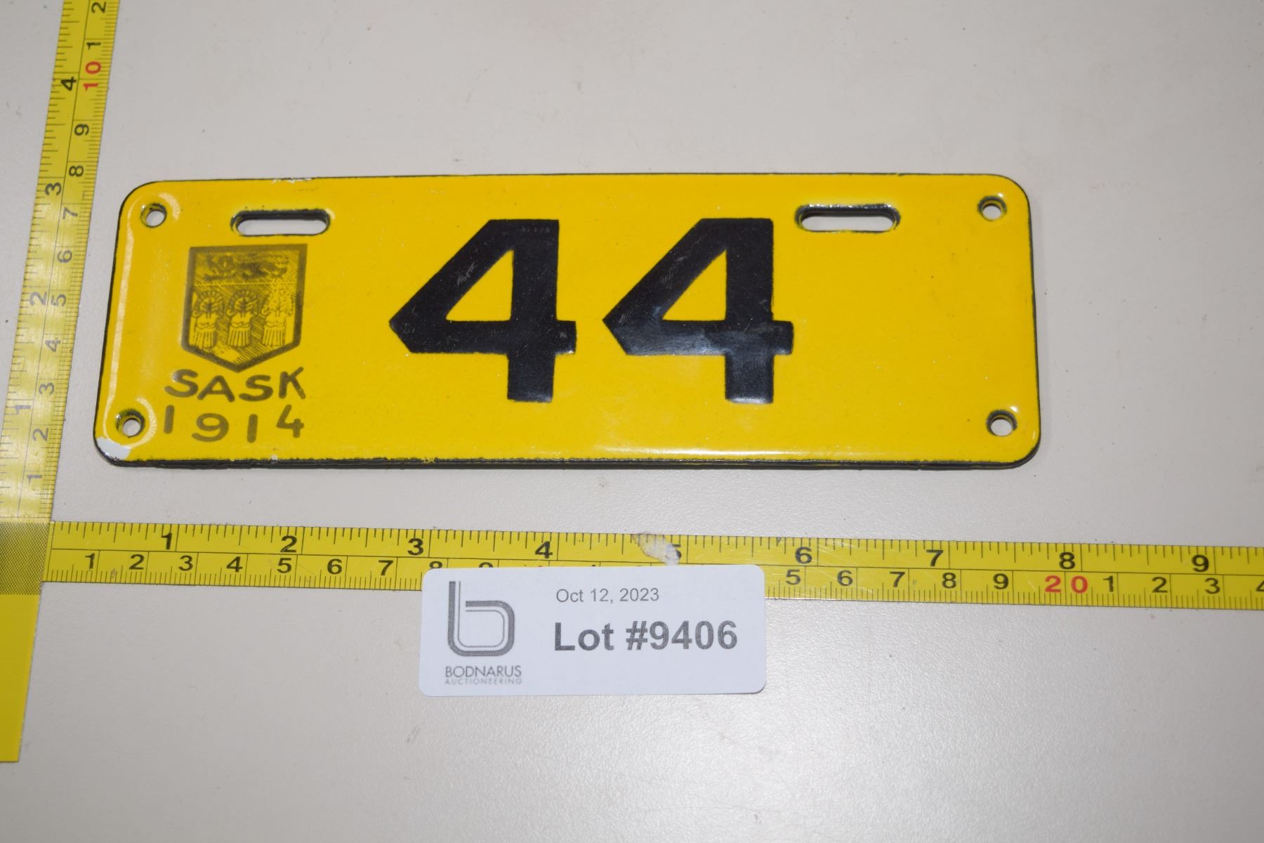 Porcelain Copy of 1914 Saskatchewan Motorcycle Plate