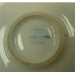 Porcelain dessert plate. Marked Bavarian China, Germany. 10-1/2" wide with pierced handles. Pink and yellow irises with hand painted accents. Condition: Excellent