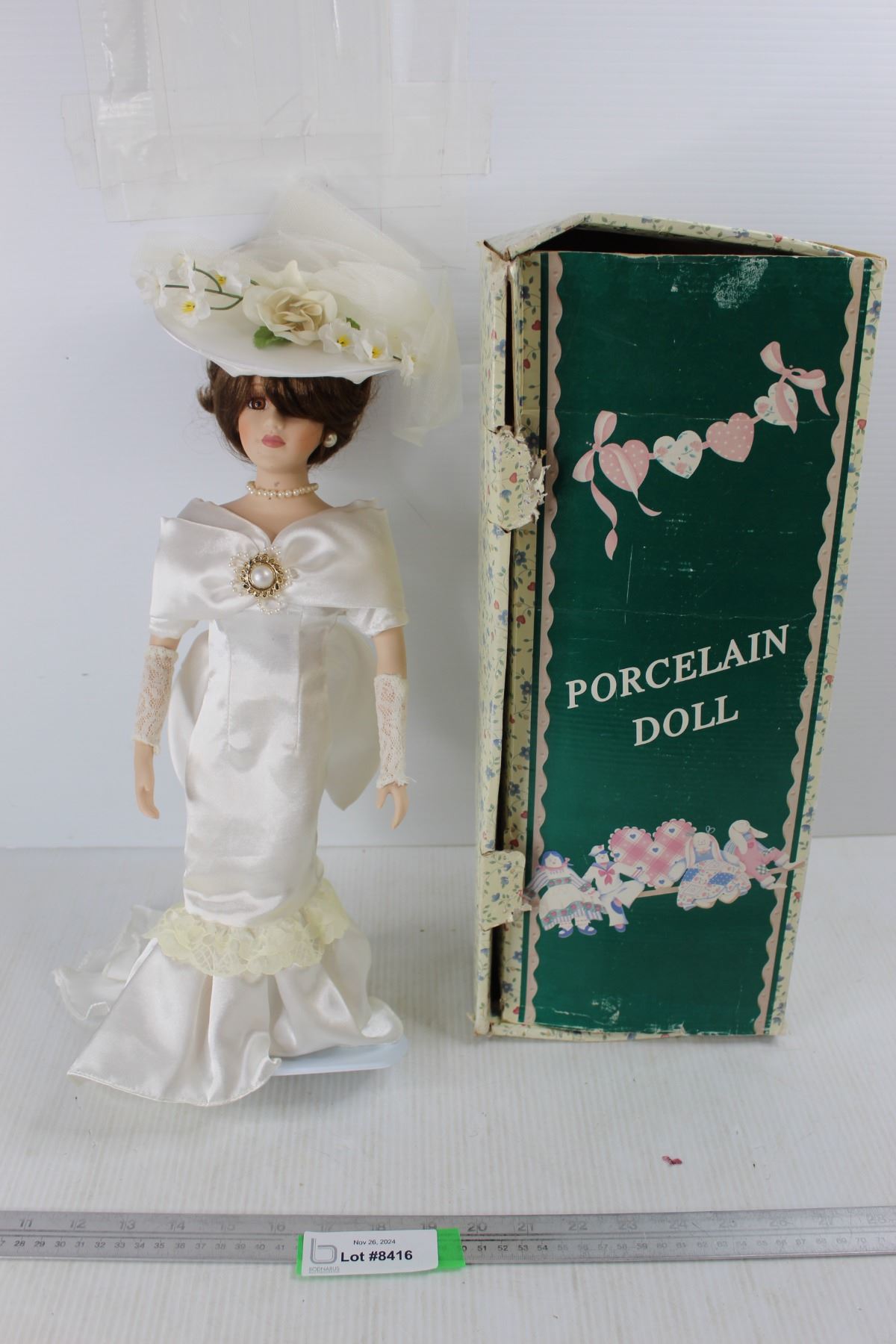 Porcelain Doll, 16'' Tall w/ Box- Box Is Damaged