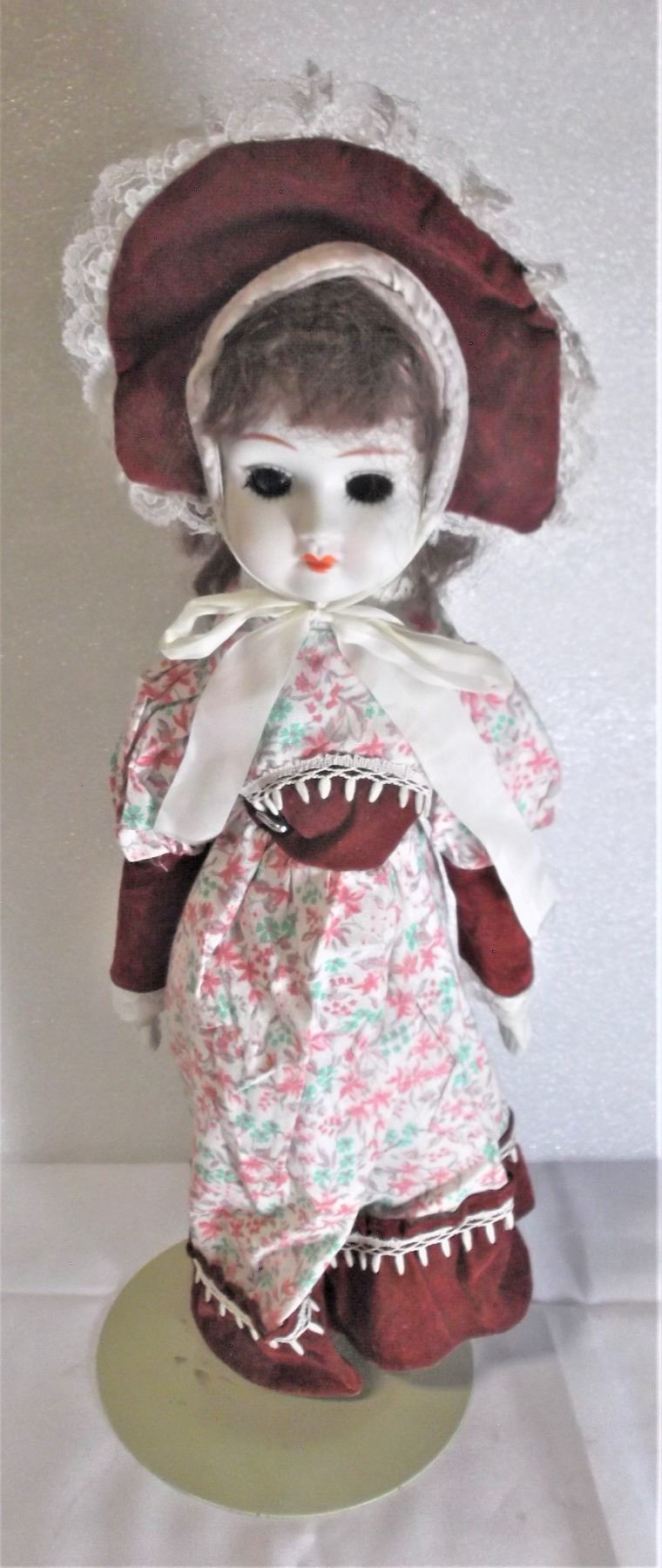 Porcelain Doll on Stand - 18 Inches Tall