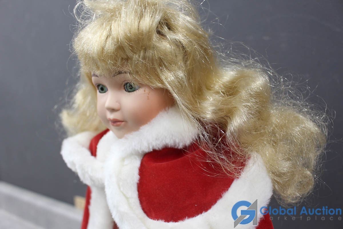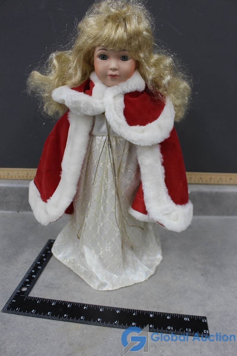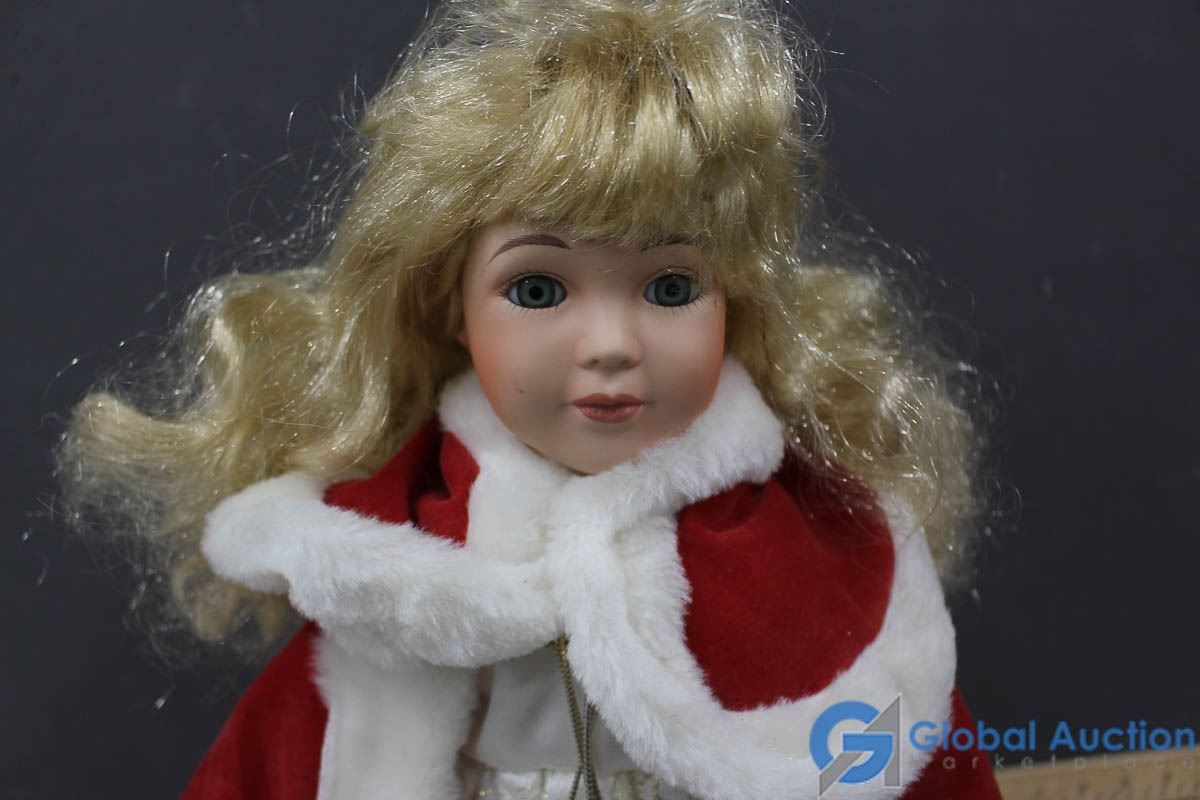Porcelain Doll w/Stand & Red Travellers Cloak