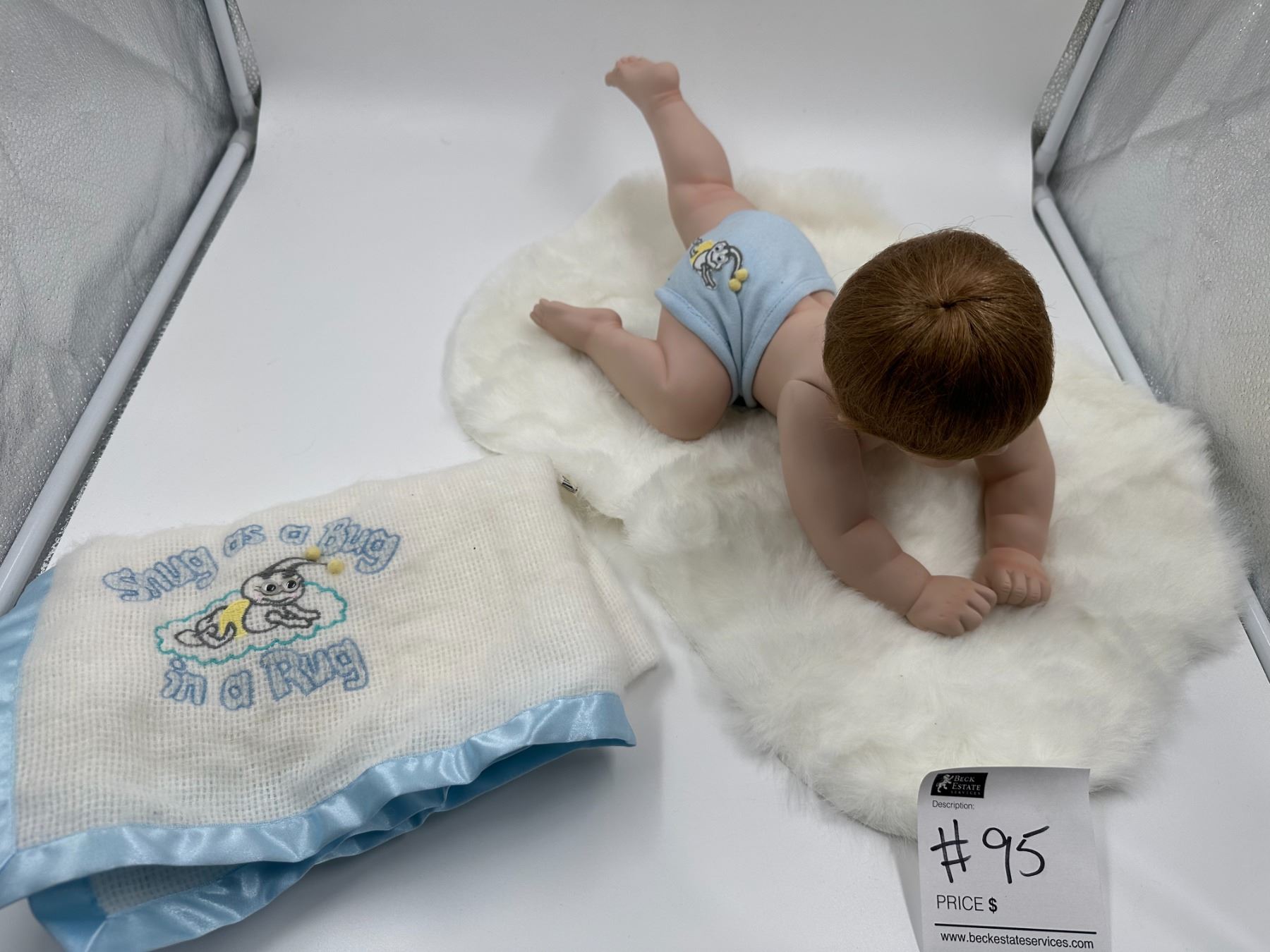 Porcelain doll - Snug is a bug in a rug. 17" long