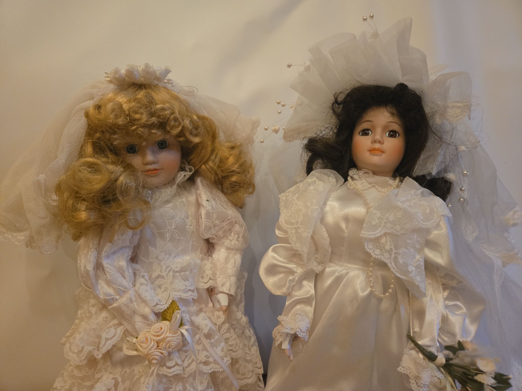 Porcelain Dolls in White - Tallest is 17T