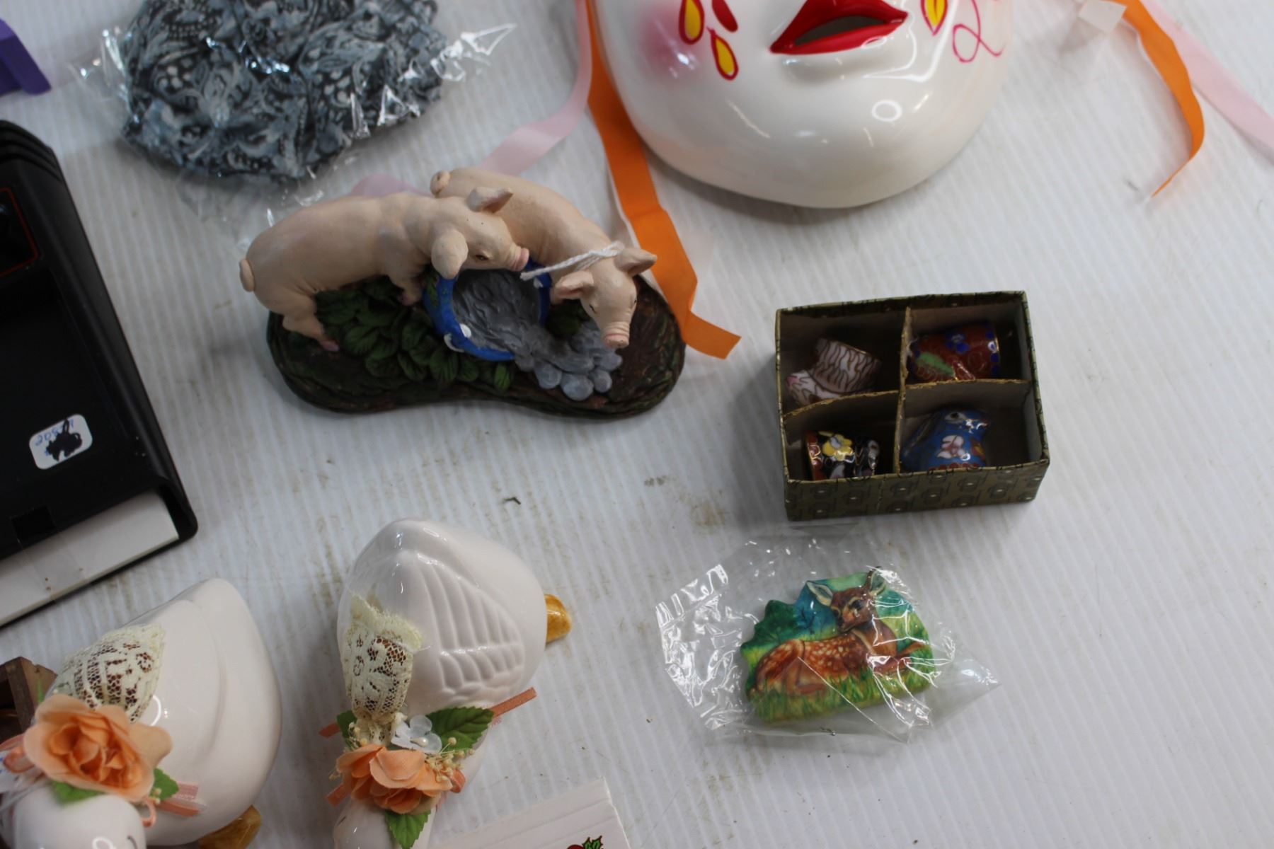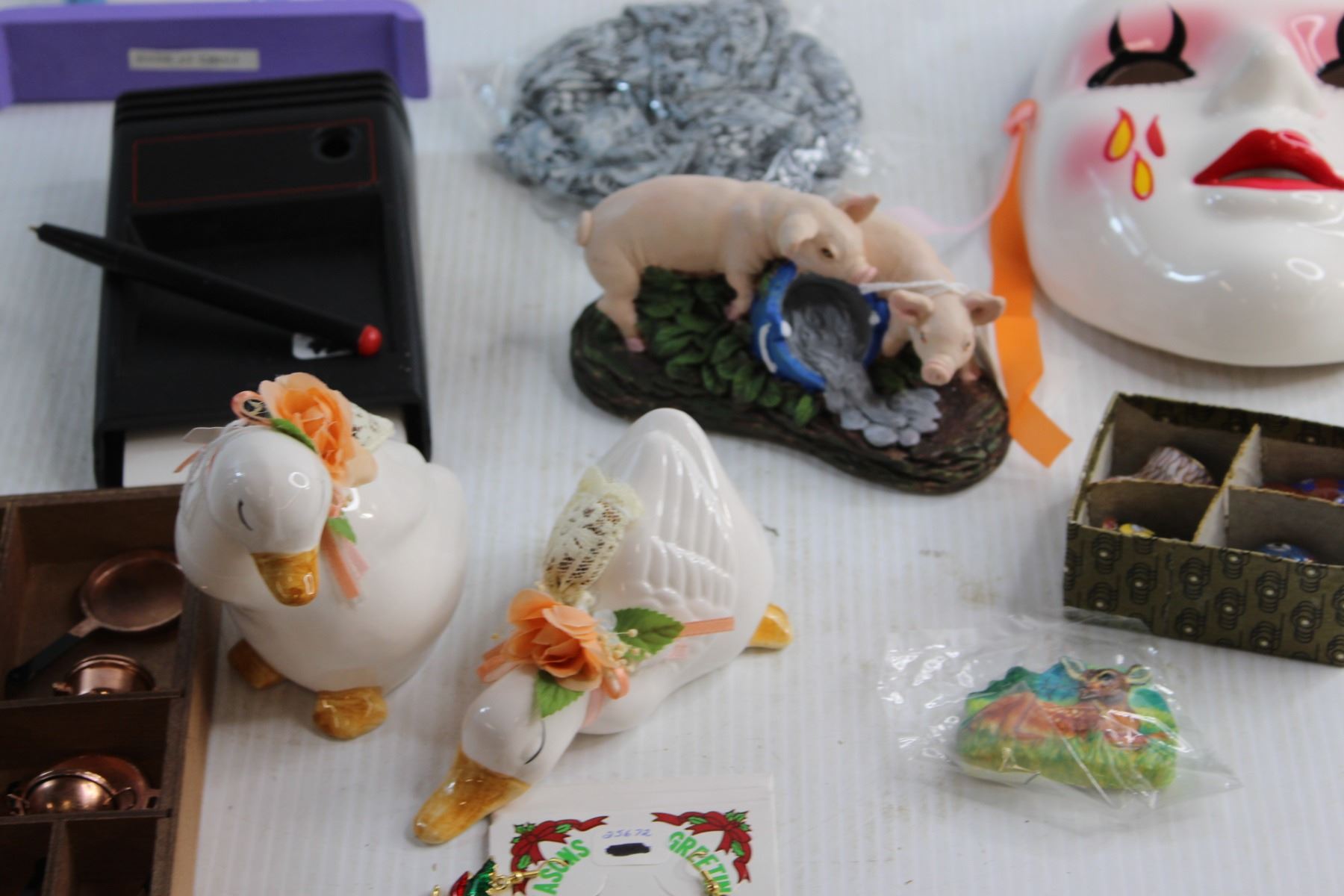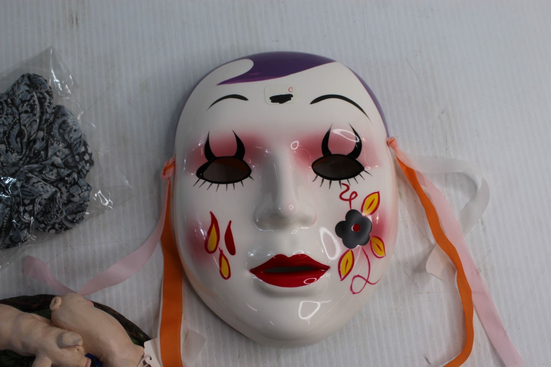 Porcelain Earthenware Mask, Memo Caddy with Pen and Assorted Decorations