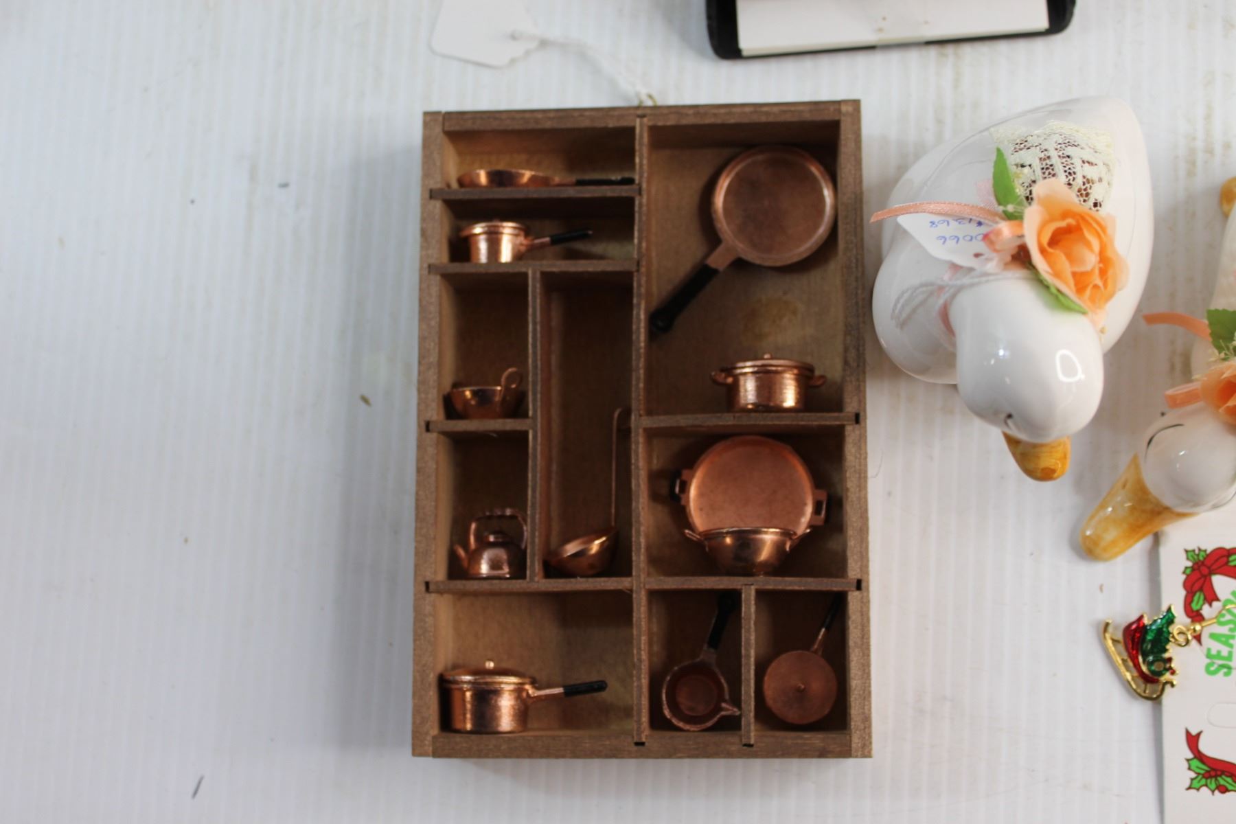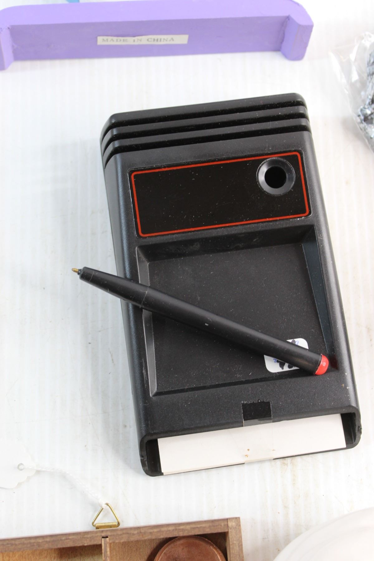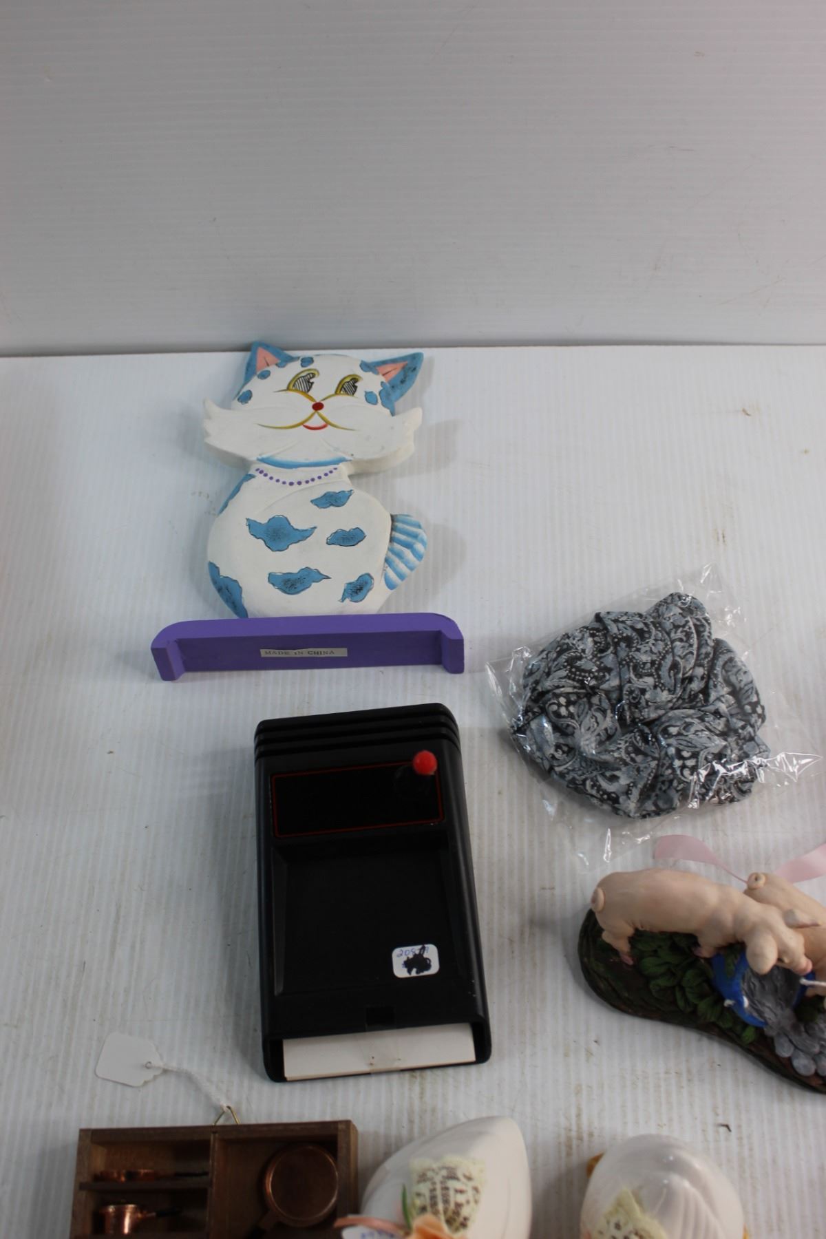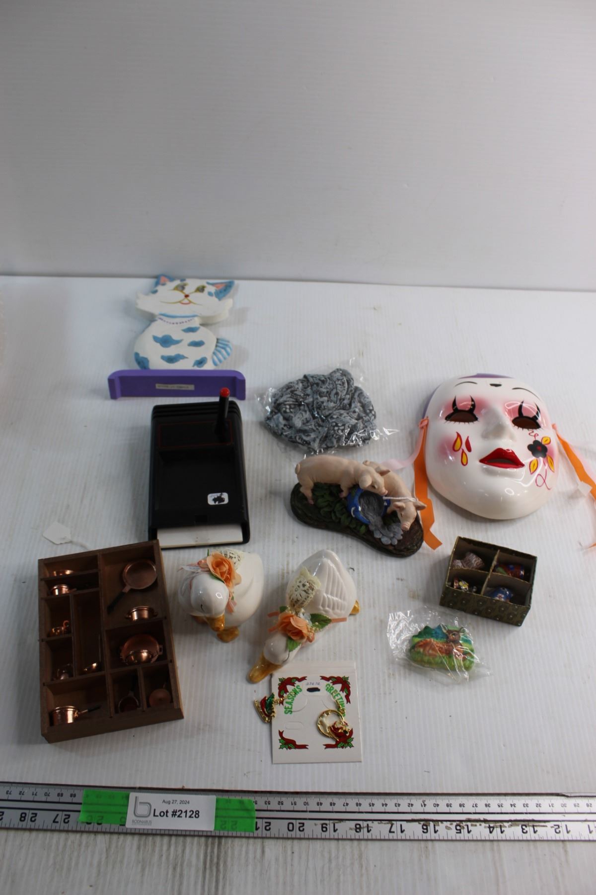 Porcelain Earthenware Mask, Memo Caddy with Pen and Assorted Decorations