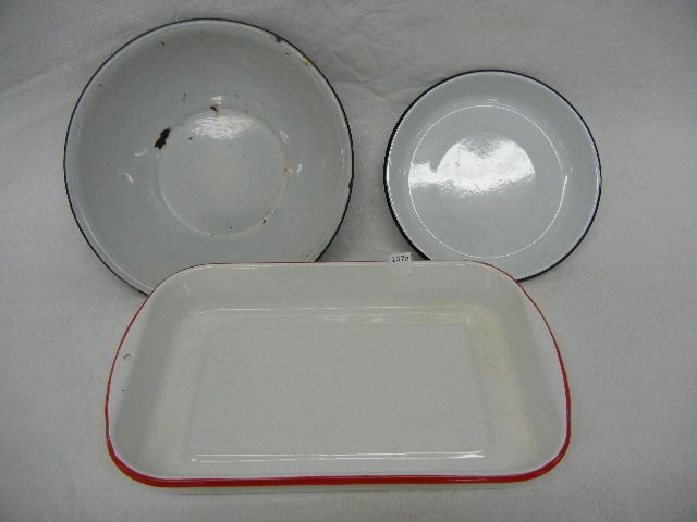 Porcelain Enamel Bowl, Plate, and Baking Dish