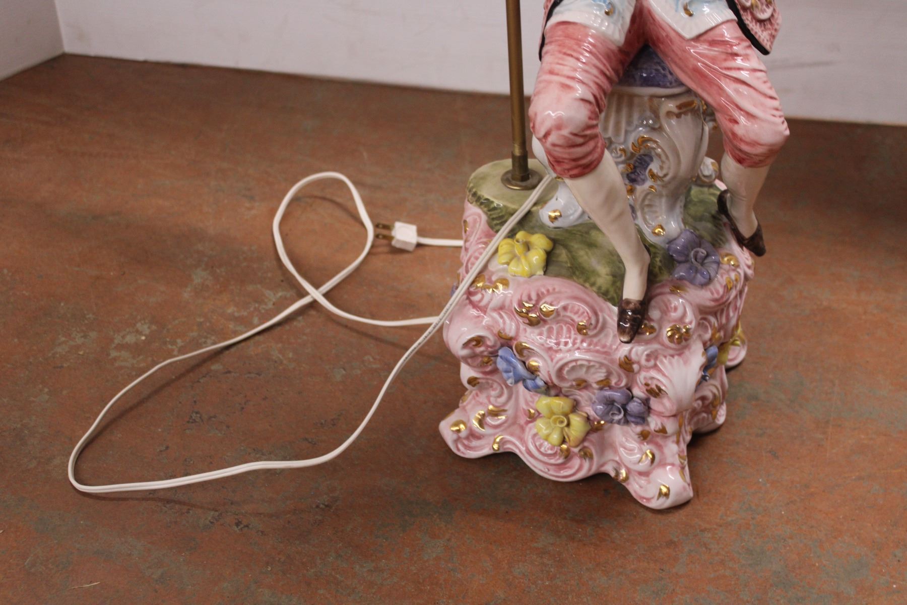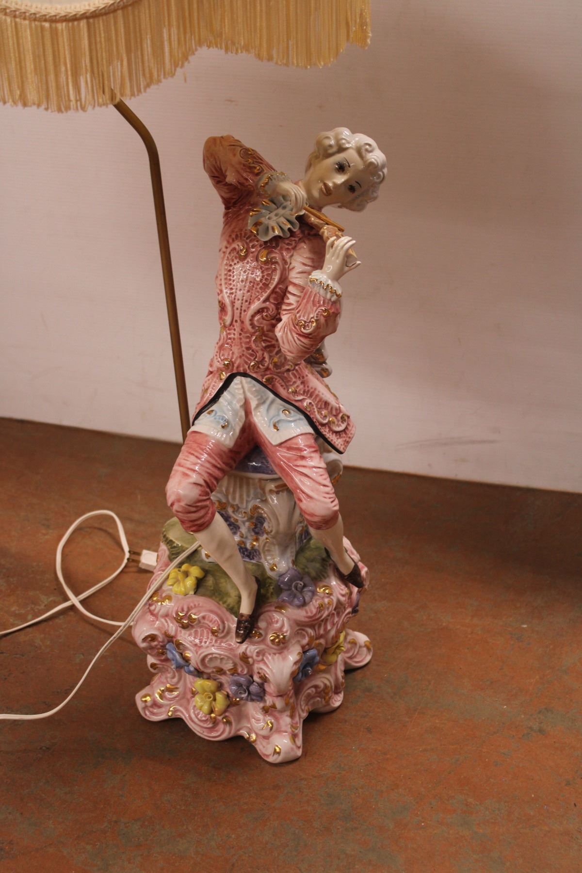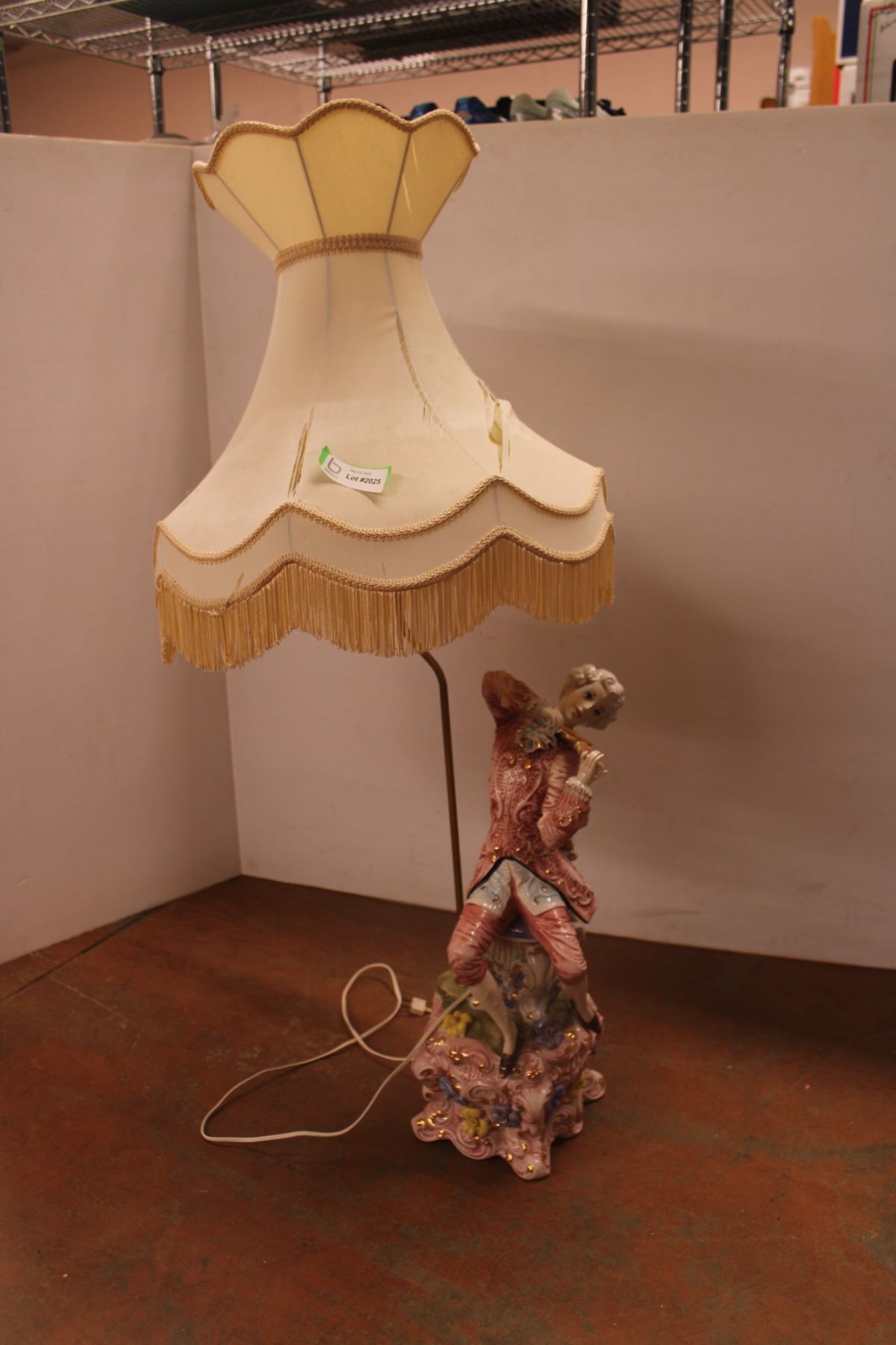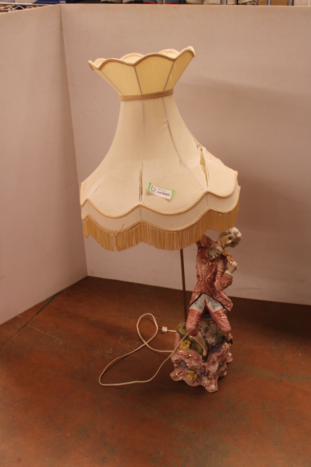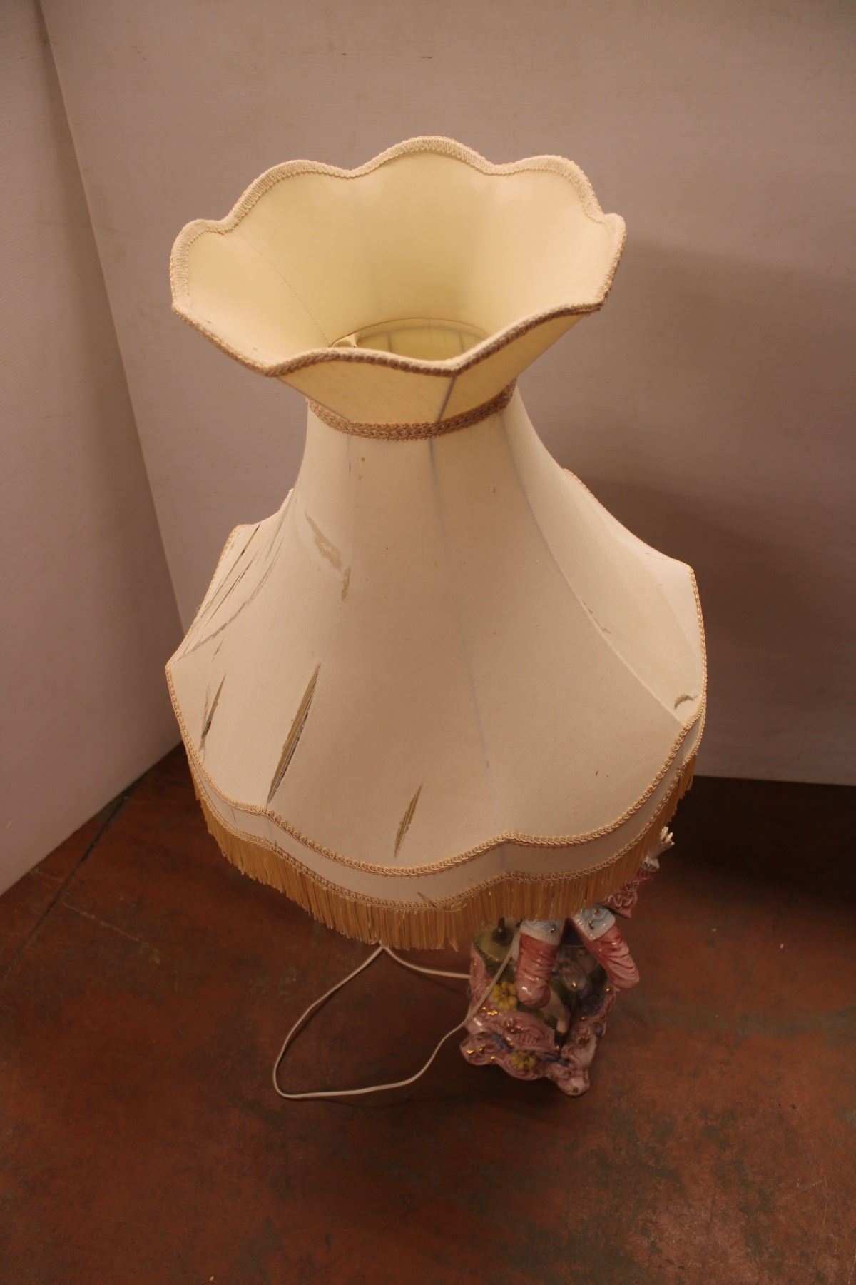 *Porcelain Figural Lamp with Shade - 48" (Shade is Damaged)