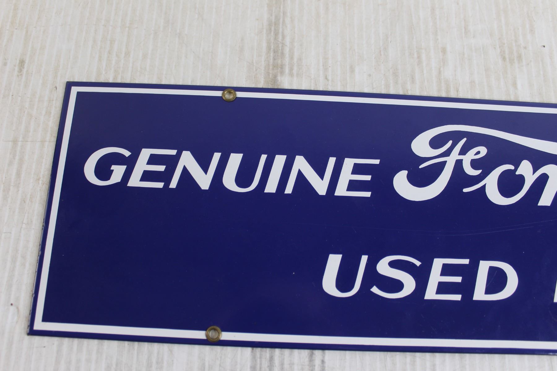 Porcelain Genuine Ford Parts Used Here Sign - 6" x 22"
