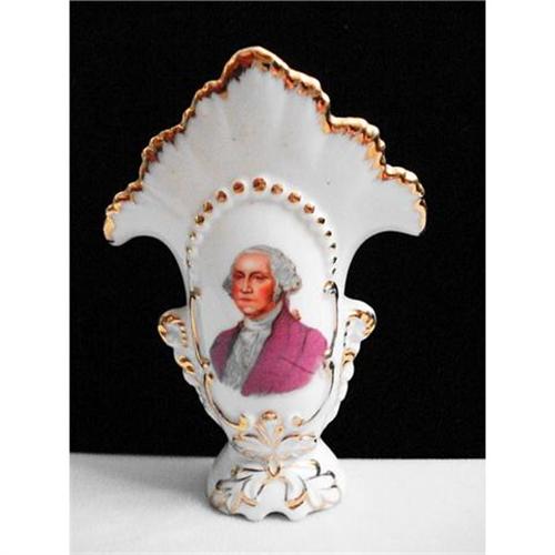 Porcelain Toothpick Holder with George Washington transfer and gold trim. Raised design on holder. Trim is in excellent condition with minimal signs of wear. No chips, cracks, or crazing. No marks of any kind, age unknown.