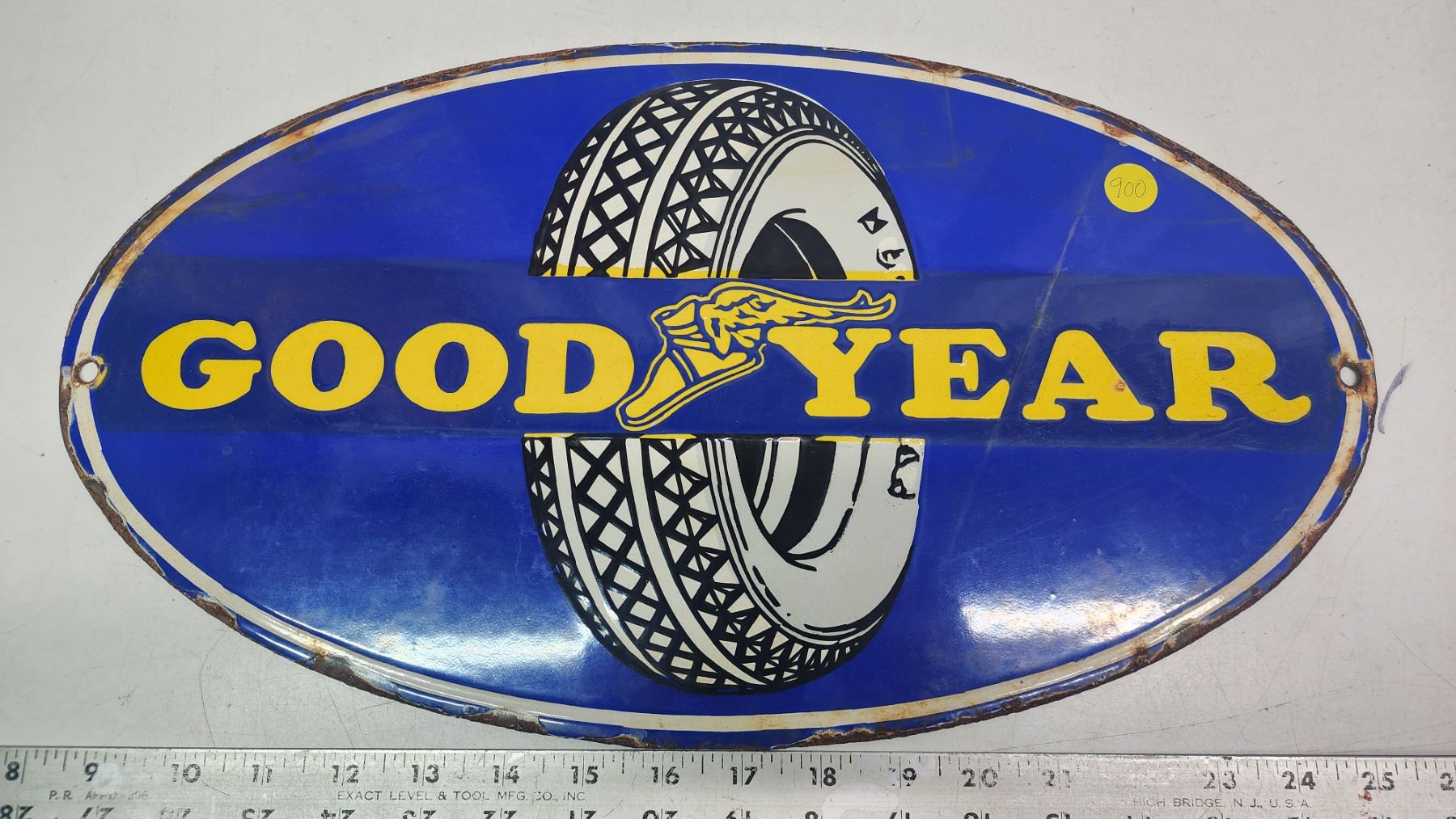 Porcelain "Goodyear tire" sign - rough edges - 18"x10" - repro
