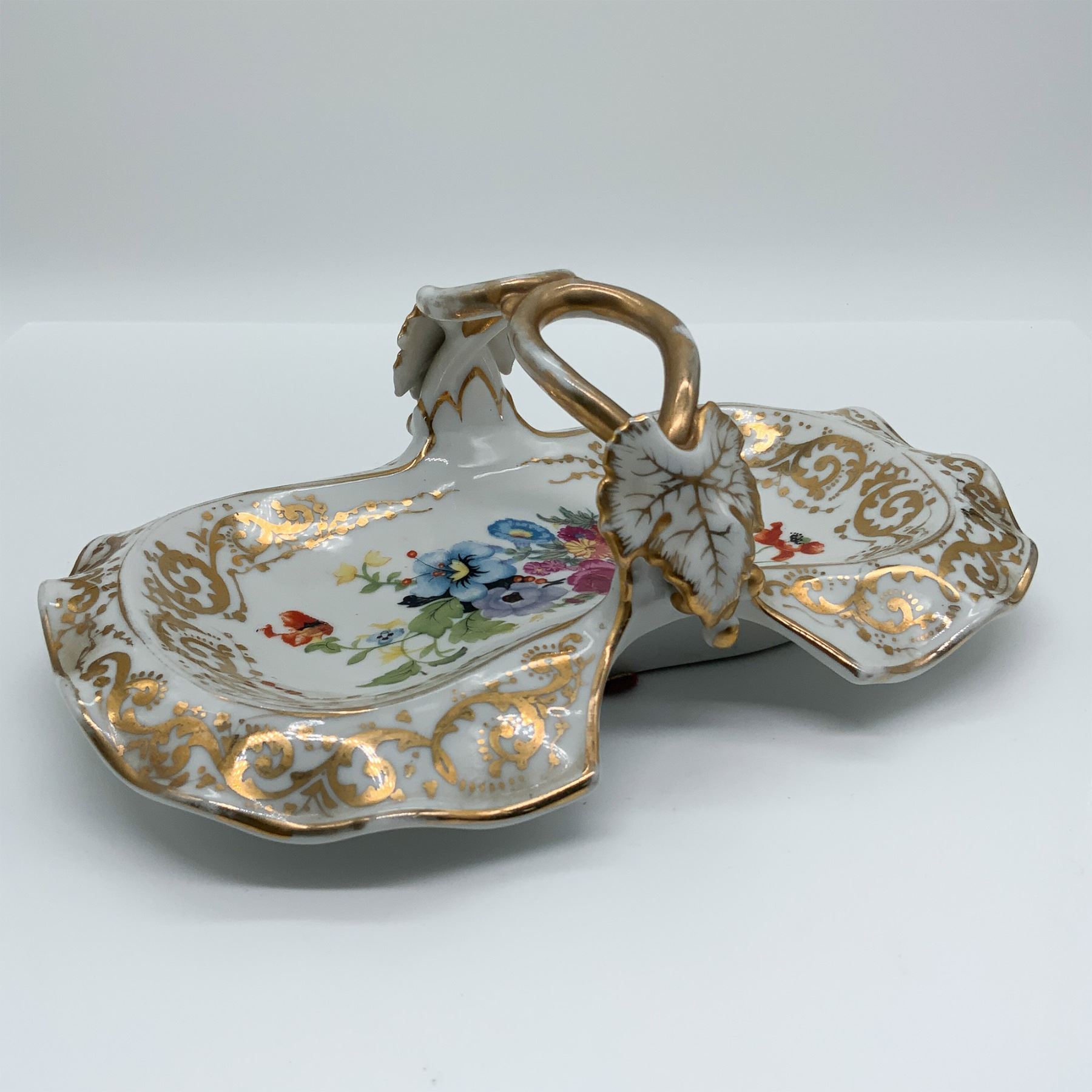 Porcelain Handled Dish, Floral and Gold Gilt Design