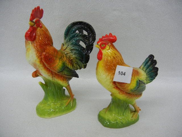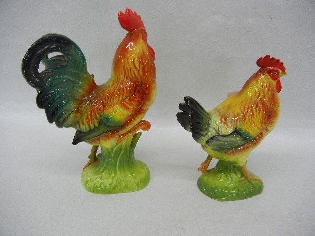 Porcelain Hen and Rooster, Made by National Pottery Co., Cleveland OH