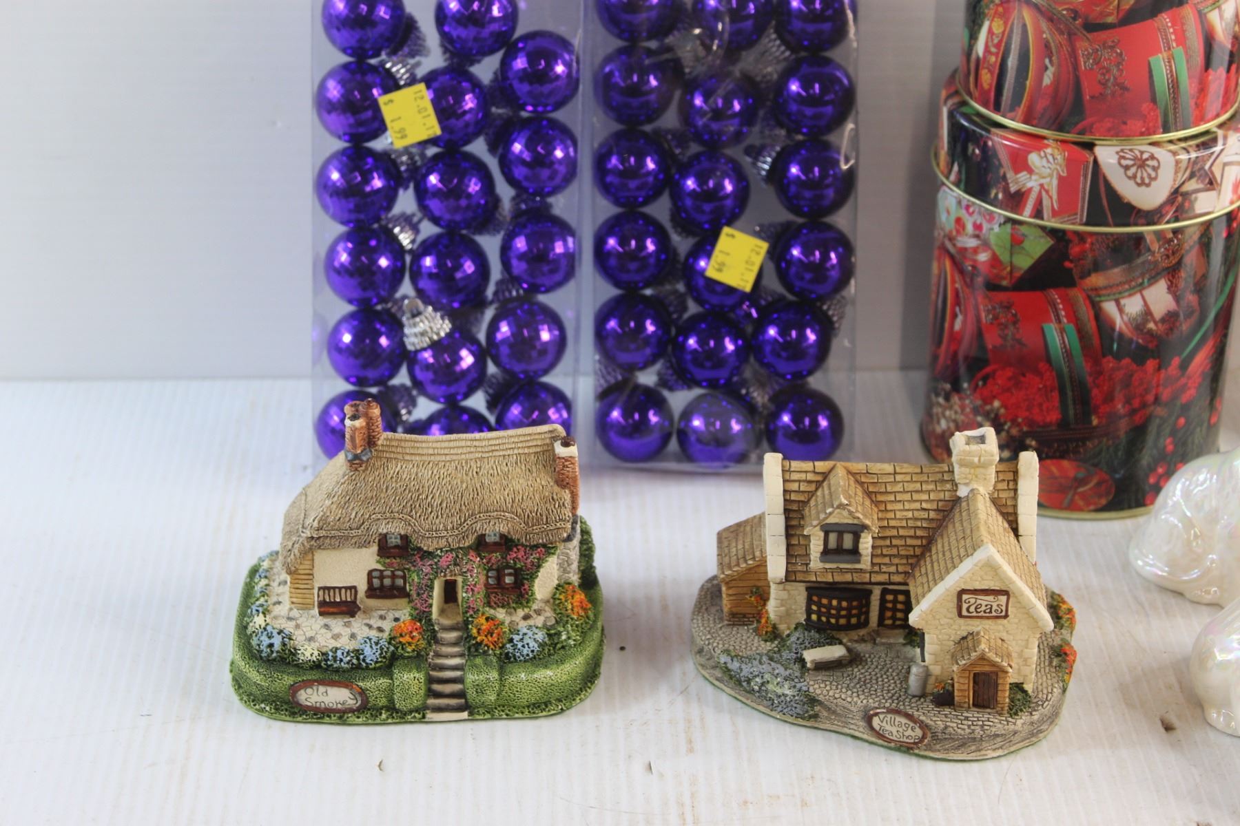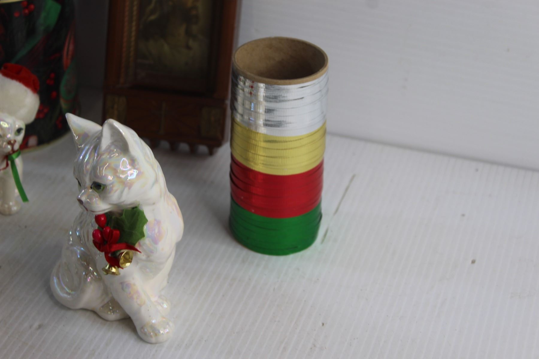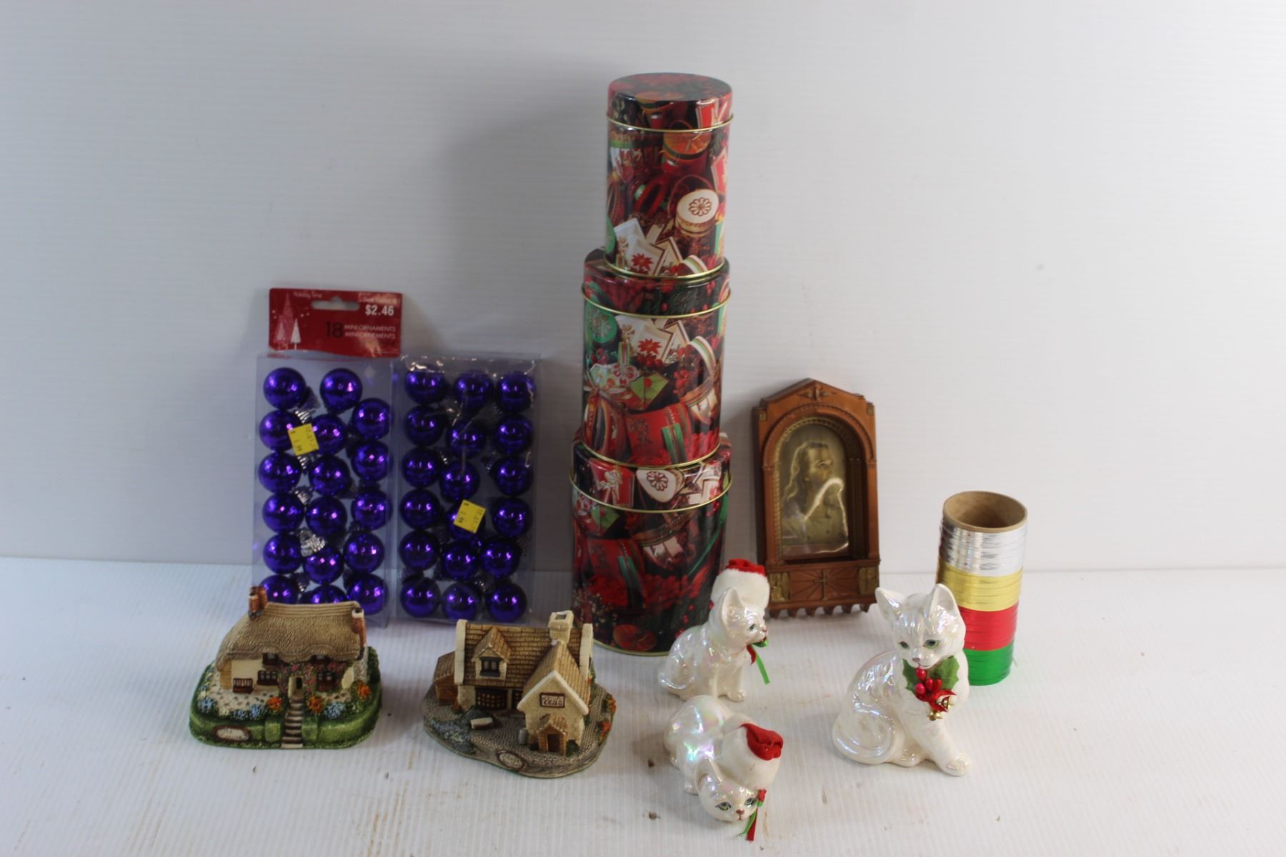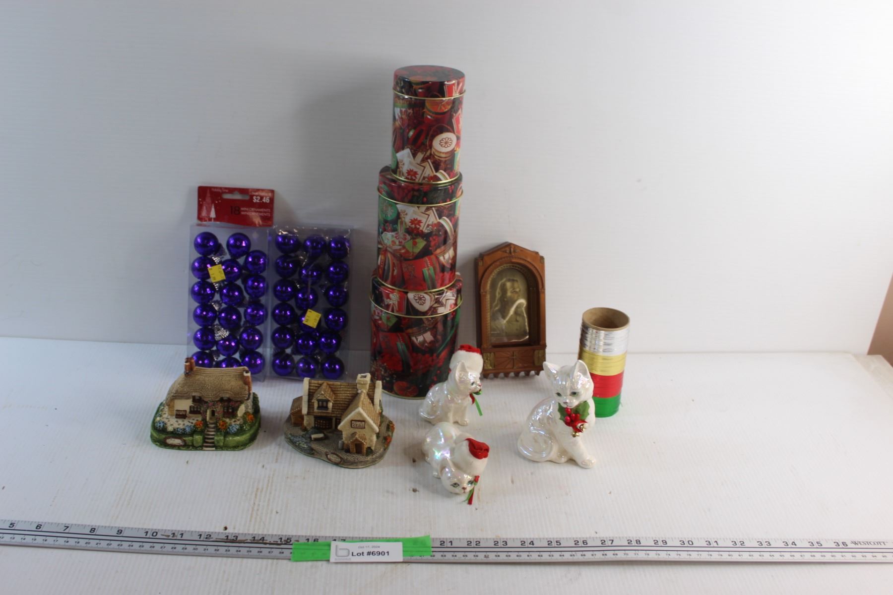 Porcelain Kittens, Christmas Tree Ornaments, Ceramic Decorations, Storage Tins and Misc.