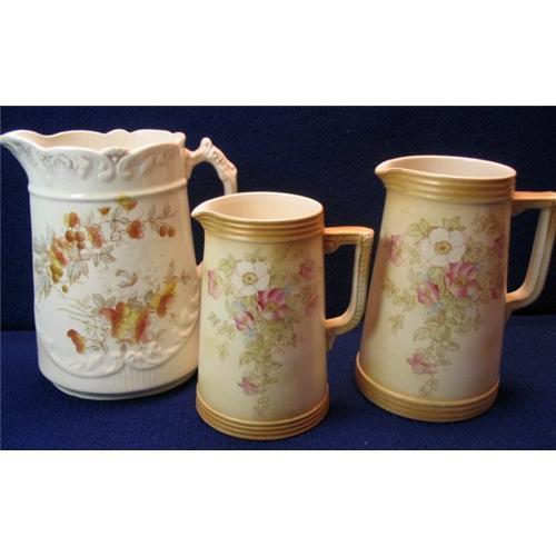 Set of 3 vintage porcelain Milk Pitchers with beautiful floral painting on the front and back of each. One pitcher is marked Wild Flowers G.T.M. Stoke on the bottom, the others are marked S.F & Co. Stoke on Trent, Crown Devon, England. All in very good condition with no cracks or chips. A great addition to your pottery or porcelain collection.
