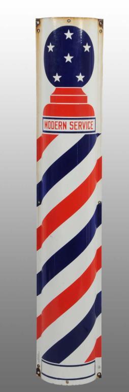 Description Circa 1930s to 1940s. Half-round sign. Some mild to medium weather stains, a few minor surface stains, marks, and a few tiny edge nicks. Condition (7.0 - 7.5, Very Good). Size 9" x 48".