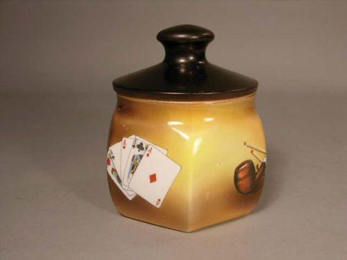 Porcelain Noritake humidor - playing card/smoking pipe motif. Ex. cond.