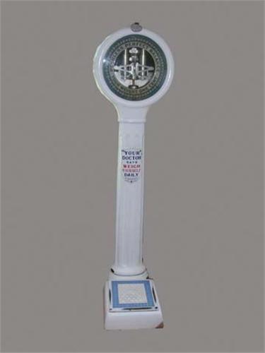 Porcelain Peerless deluxe aristocrat lolli-pop 1 cent scale. Ex. original cond. except for recast coin door. Resided in the Route 66 Greyhound bus depot in Pauls Valley, OK until 1955. Works.