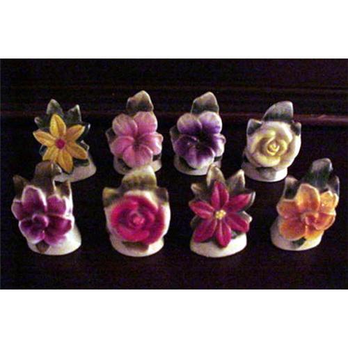 Very unusual and beautiful placecard holders by Commodore of Japan. Set of eight. One of them still has the foil sticker. Each has a totally different flower, with a slit in the back to hold the placecard. Couldn't find a single nick, chip or crack. Unique conversation pieces.