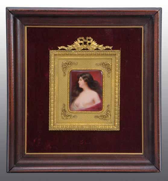 Description Bronze frame and framed under glass. Signed by "Rose." Condition (Excellent). Size Porcelain: 2 - 1/2" x 3".