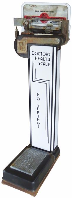 Porcelain RX Dr's Health Scale. Very good condition. 16 X 50 X 20 inches.