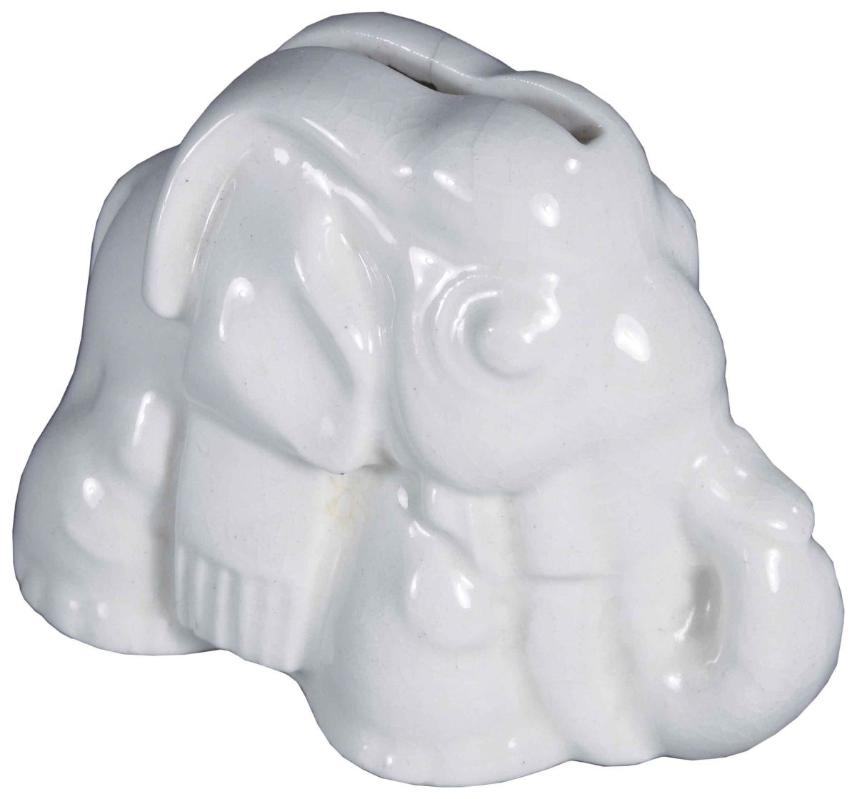 Porcelain Razor Blade Receiver in the shape of an elephant. Marked on bottom Listerine Shaving Cream Offer. Normal crazing. 3 1/4 X 2 1/2 X 2 inches. Start Price $30