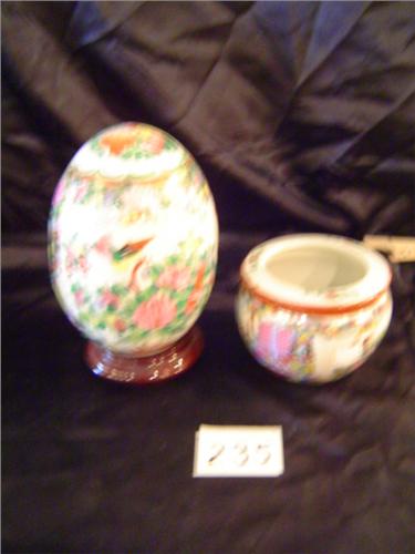 7" Porcelain Egg on Stand with 4" Porcelain Fish Pot, Royal Family Design. From China.