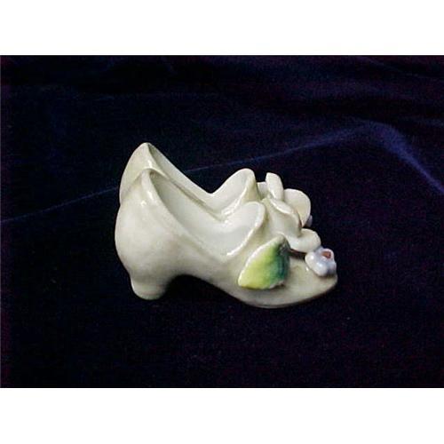 Porcelain Shoes. 1 1/8? tall, 1 ¾? long. Pair of ladies? shoes, with an unobtrusive glaze of dull moss green and tan white. Wonderful companion piece to its male brothers, allowing for an elegant addition to any mantelpiece or decorative space, without detracting from the overall pleasantness and adding considerable appeal. In good condition, once again maintaining a shine under bright conditions. Maker and year unknown.
