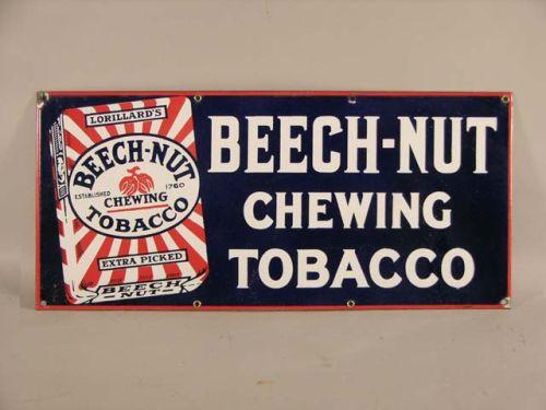Porcelain sign for Beech-Nut Chewing Tobacco, 22" x 10", near mint cond.