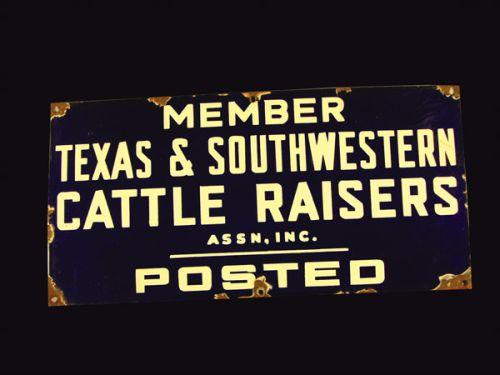 Porcelain Sign for Texas and Southwestern Cattle Raisers. Chips on edges and grommets otherwise good condition. 20 X 10 inches.