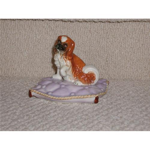 <tr><td>Title:Porcelain Spaniel Dog on Ornate Cushion</td></tr>