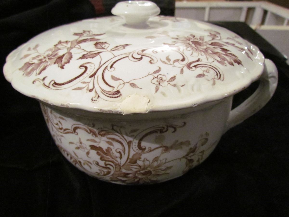 Porcelain Thunder Mug – C/W Lid F. Winkle + Co – Shelly Pattern 10” X 6” (has Chips)