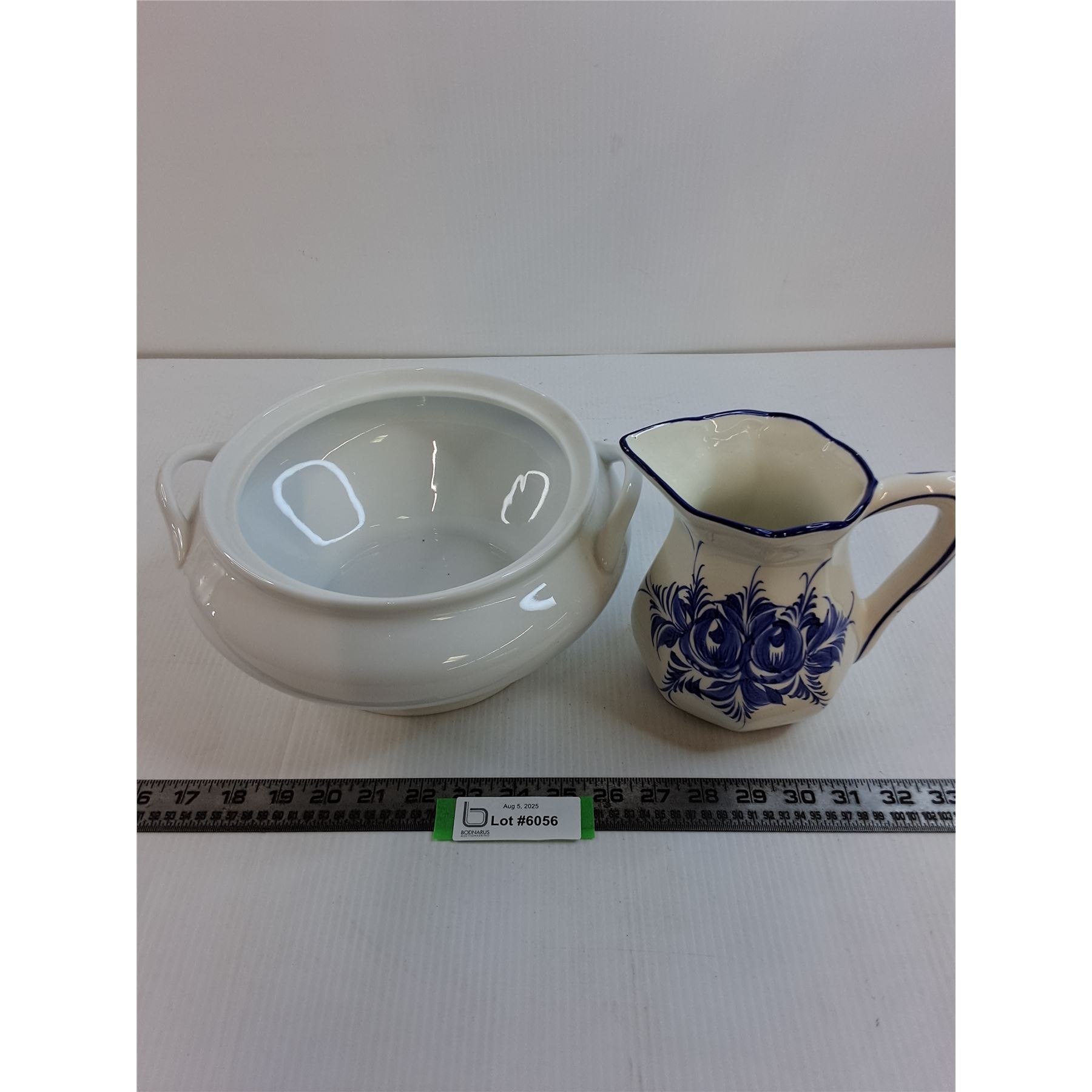 Porcelain Tureen 11" Dia, Water Pitcher from Portugal