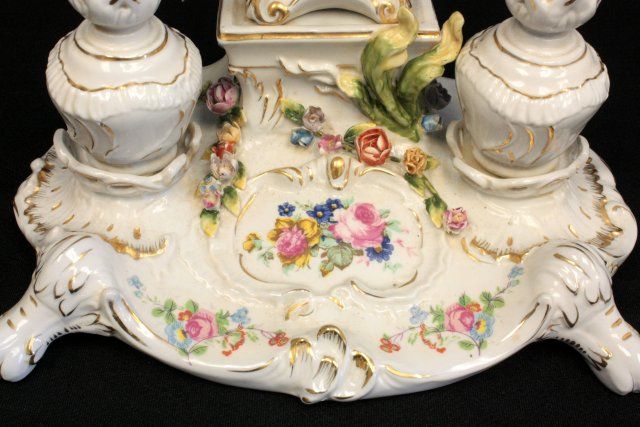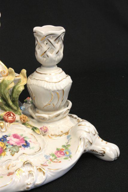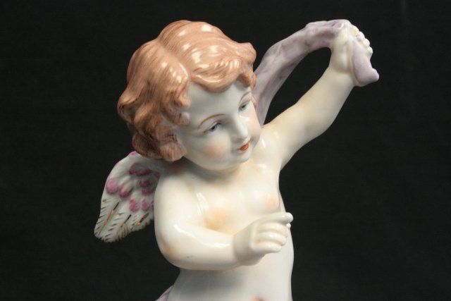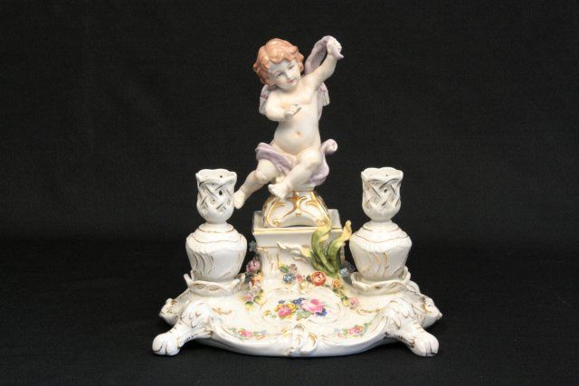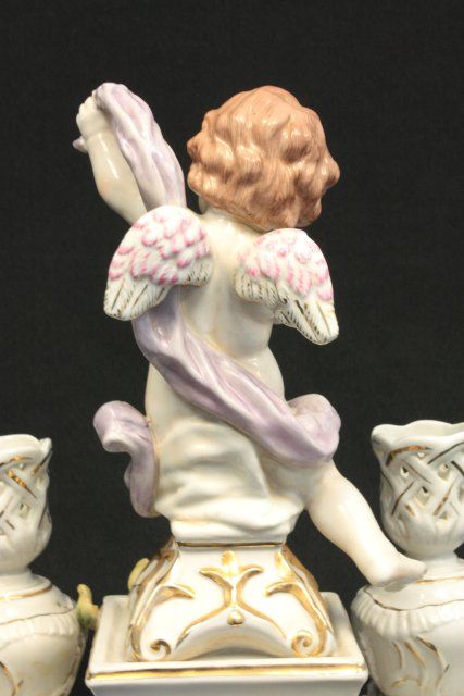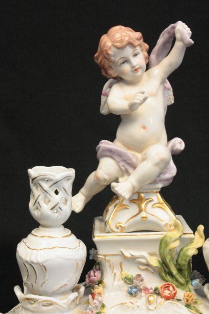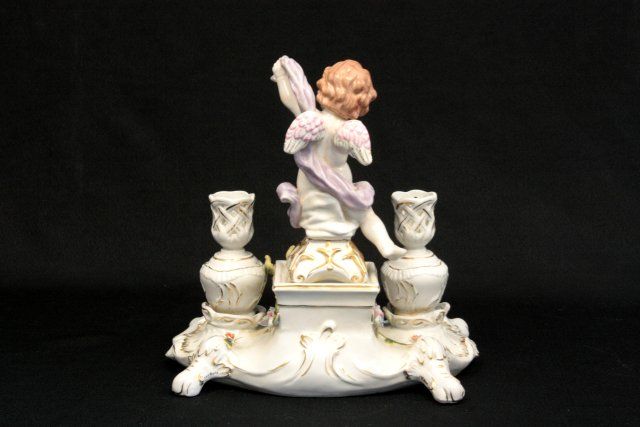 Porcelain candle holder has "Cherub Angel". Approx. 12" H x 12" W. Please read our terms of sale.