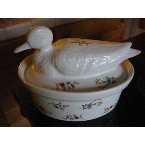 <tr><td>Title:Porcelain casserole w lid figure of a duck! </td></tr>