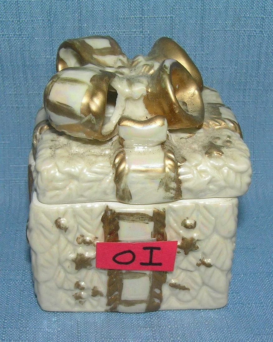 Porcelain gift box shaped trinket box est. value $25.00-$30.00