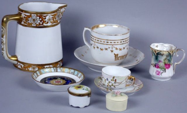 Limoges pill box and an early signed RS Prussia Demitasse cup, 9 pieces total.