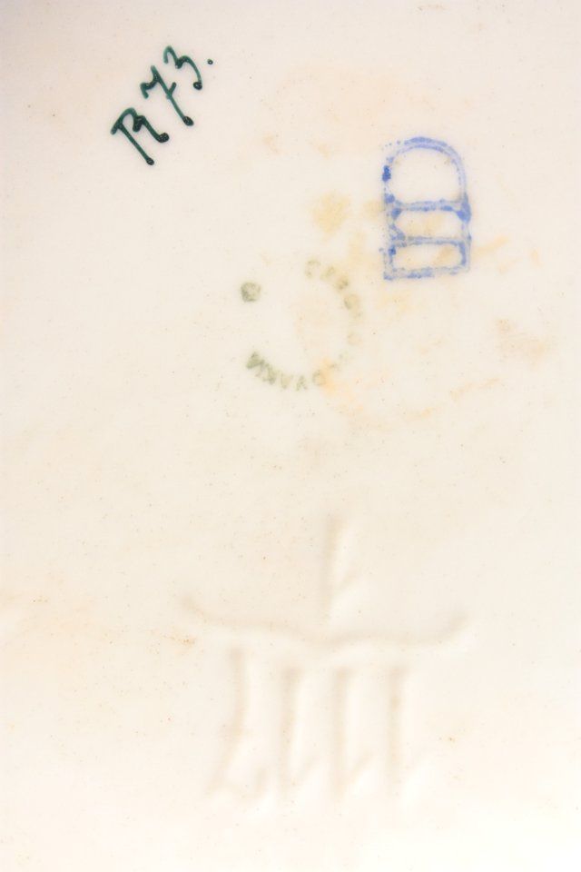 Stamped Czechoslovakia with beehive mark. Approx. 14" H. Professionally repaired. Please read our terms of sale.