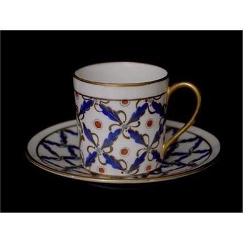 Charming demitasse and saucer set marked on the underside in blue with crossed arrows characteristic of Porcelaine de Paris. In very good used condition as shown. Please ask questions, request additional photos and shipping costs before buying.