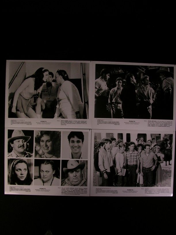 Set of eight black and white studio issued stills from Bob Clark's Porky's.