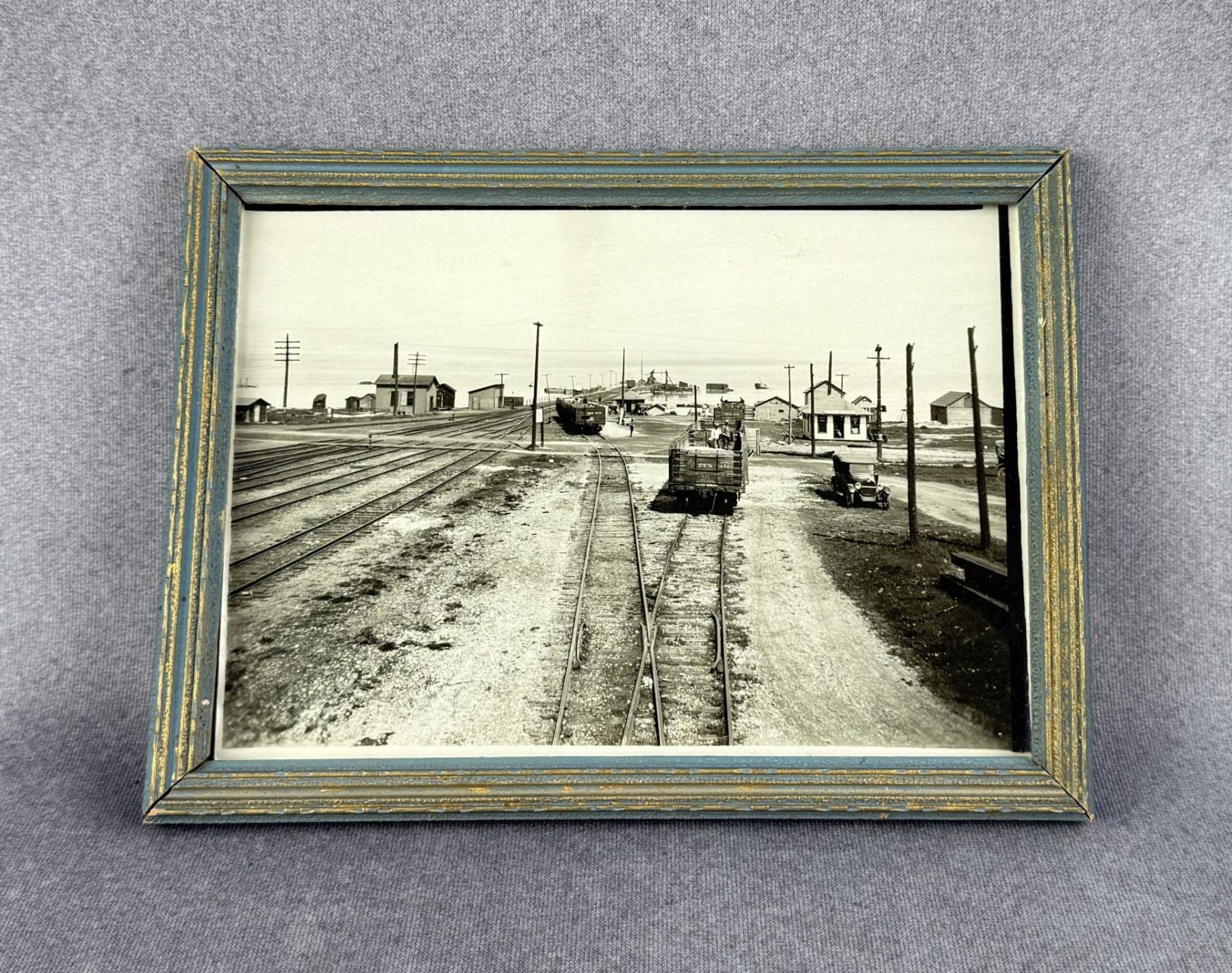 One of the cars says D&M, one of the buildings has Ferry Lunch Room written on the sign. Based on these factors we believe that the photo is an early image of Port Huron Michigan. 5 3/4" by 7 3/4" framed.
