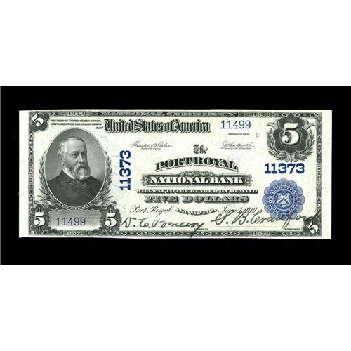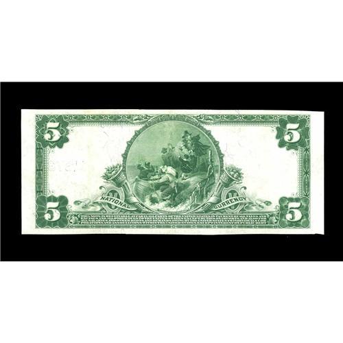<B>Port Royal, PA</B></I> - $5 1902 Plain Back Fr. 606 <B>The Port Royal NB</B></I> Ch. # 11373<BR>A beautiful note from a very scarce Juniata County bank which had only $820 in large size outstanding by 1935. Sharp <B>Choice Crisp Uncirculated,</B></I> with bright white paper, exceptionally vivid colors, and strong black signatures.