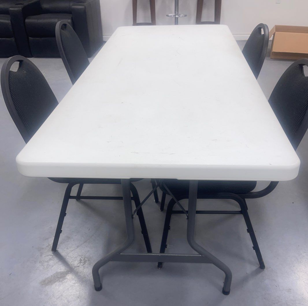 Portable/ Collapsible Rubbermaid Durable Table w/ Four Chairs