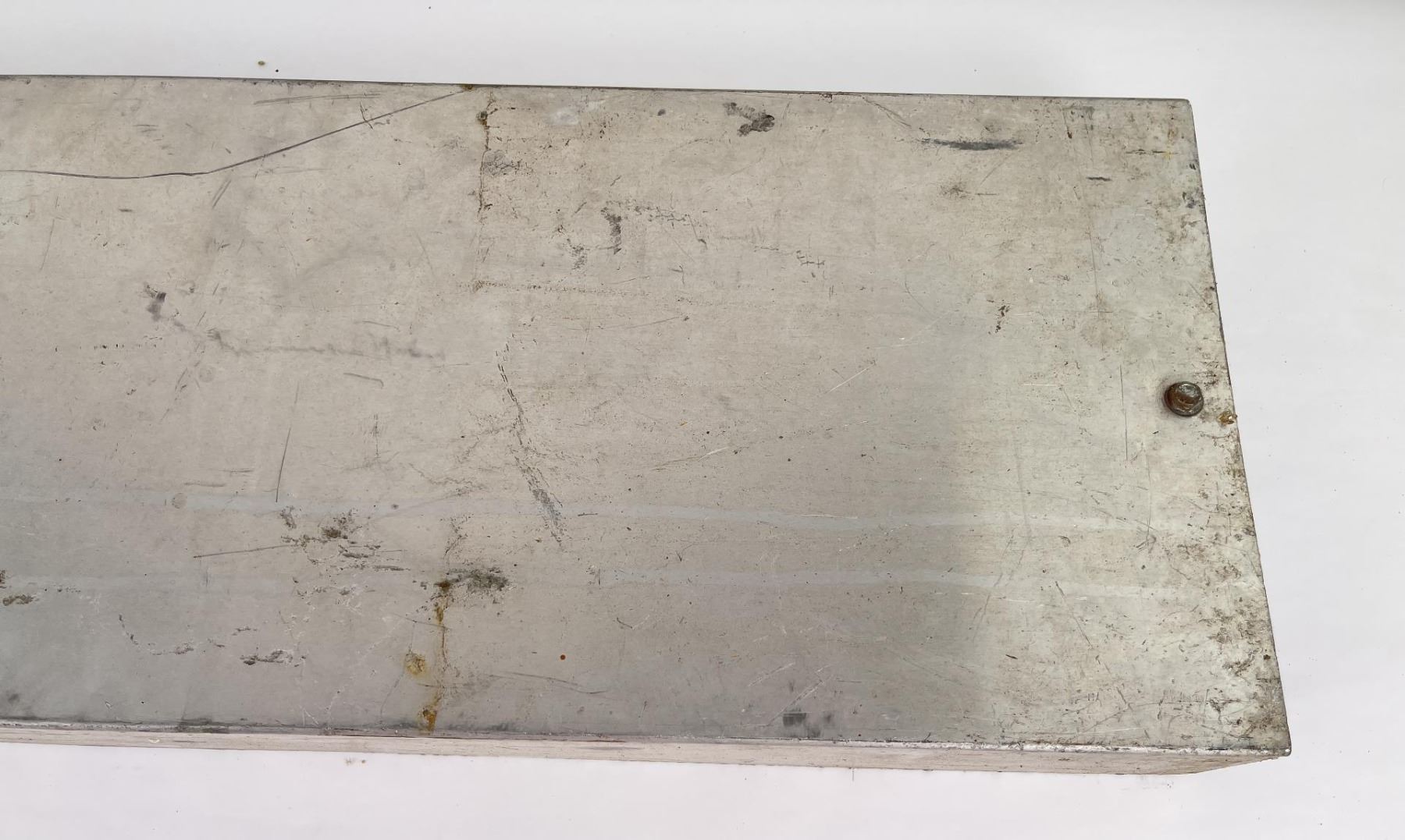 Ready for prospecting, this sluice box measures 10" x 36", 12.5" at the flare. Manufacturer unknown.