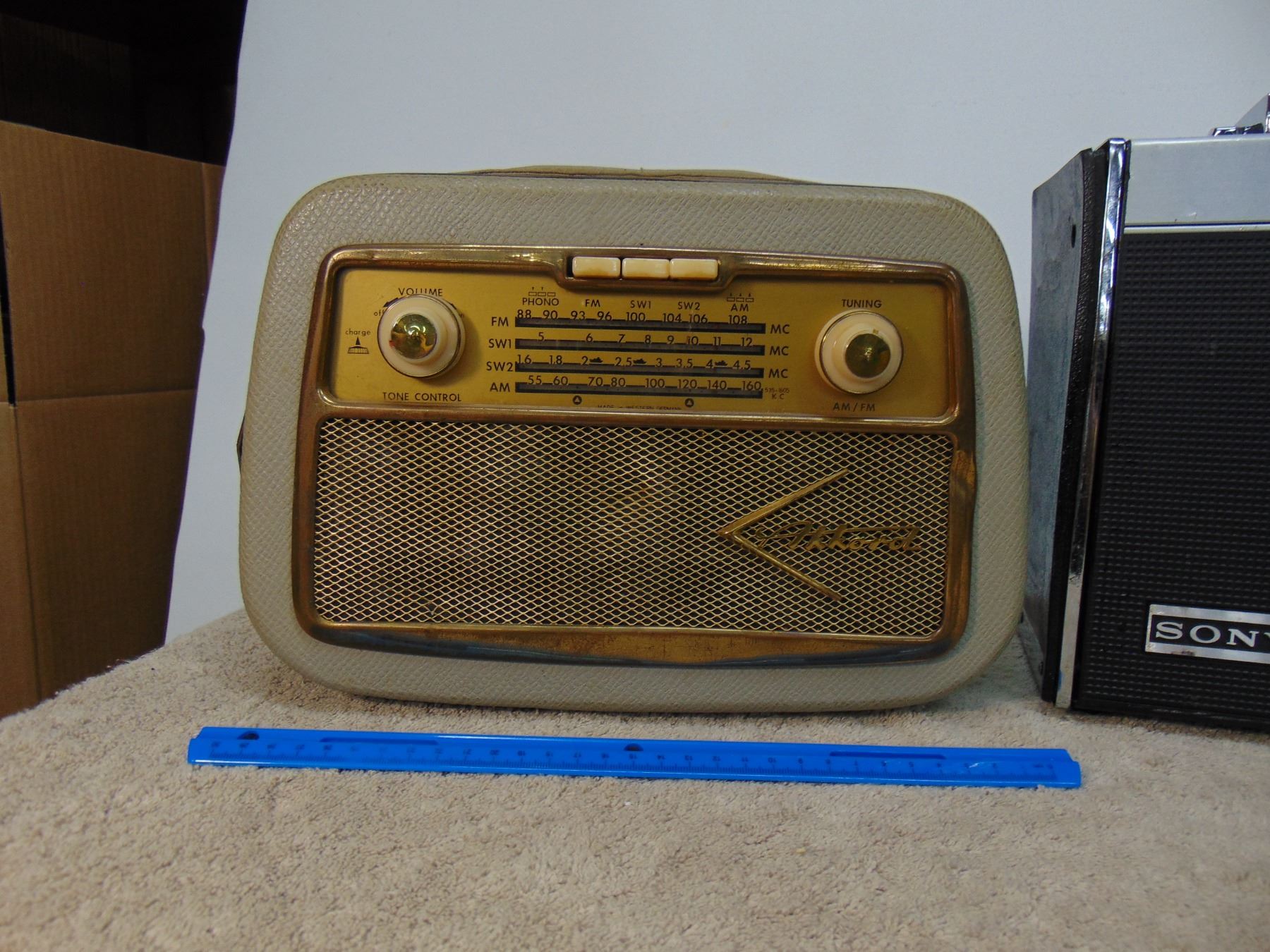 Two items: 1) Akkord portable, multi-band; 2) Sony AM/FM, multi-band portable